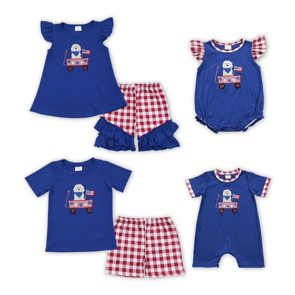 Dog Truck Flag Embroidery Sibling 4th of July Matching Clothes