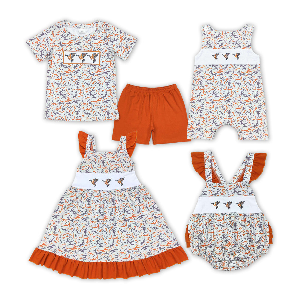 Duck Embroidery Camo Print Sibling Summer Matching Clothes