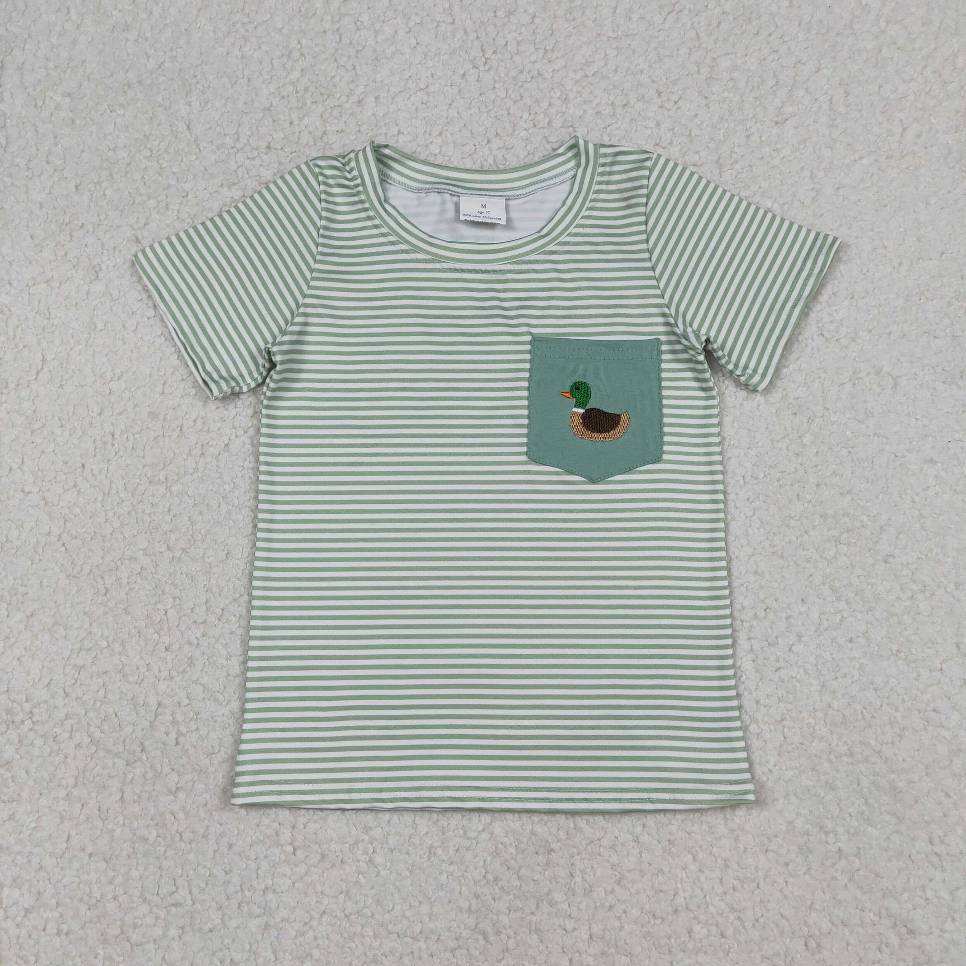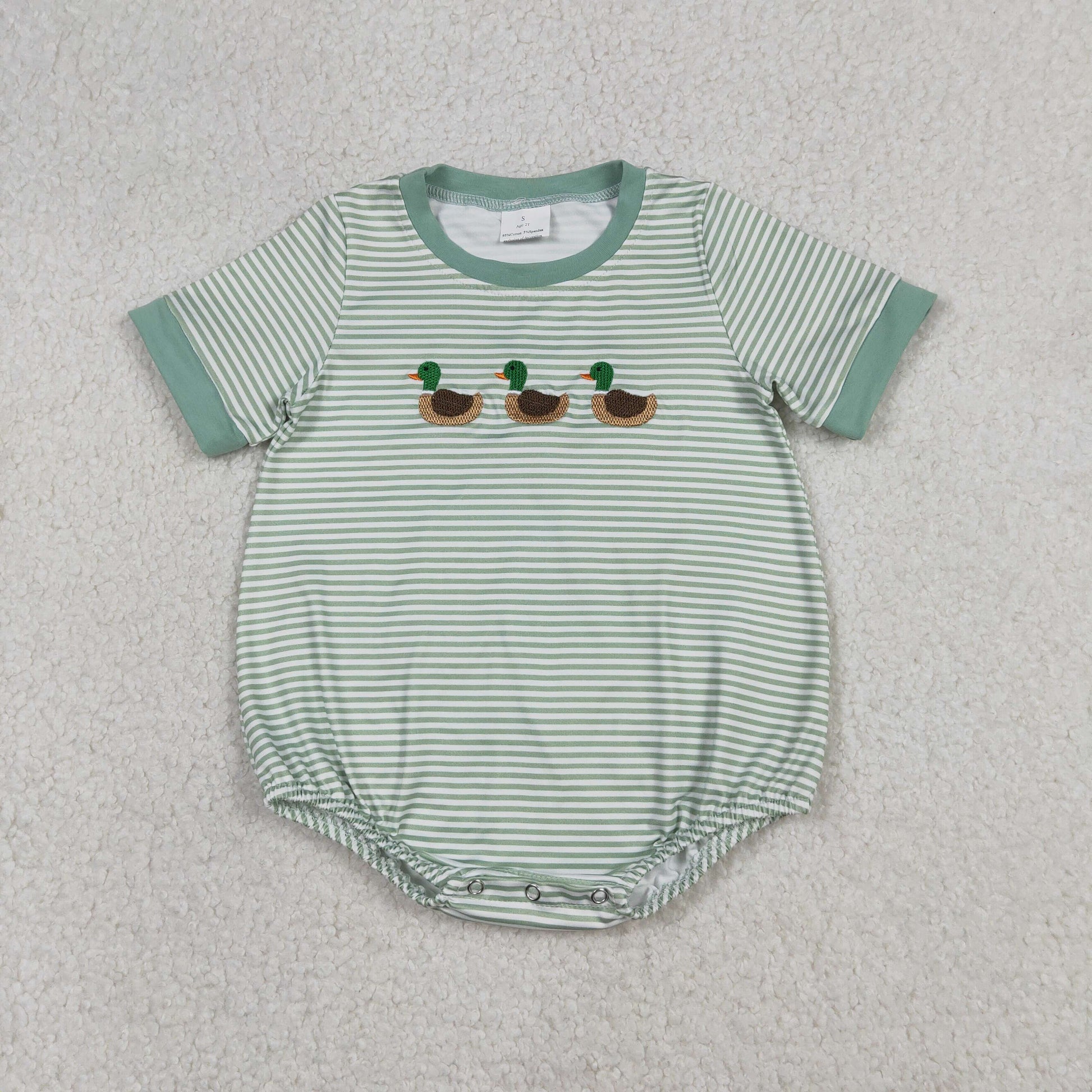 Duck Embroidery Green Stripes Print Boys Summer Matching Clothes Brothers Wear