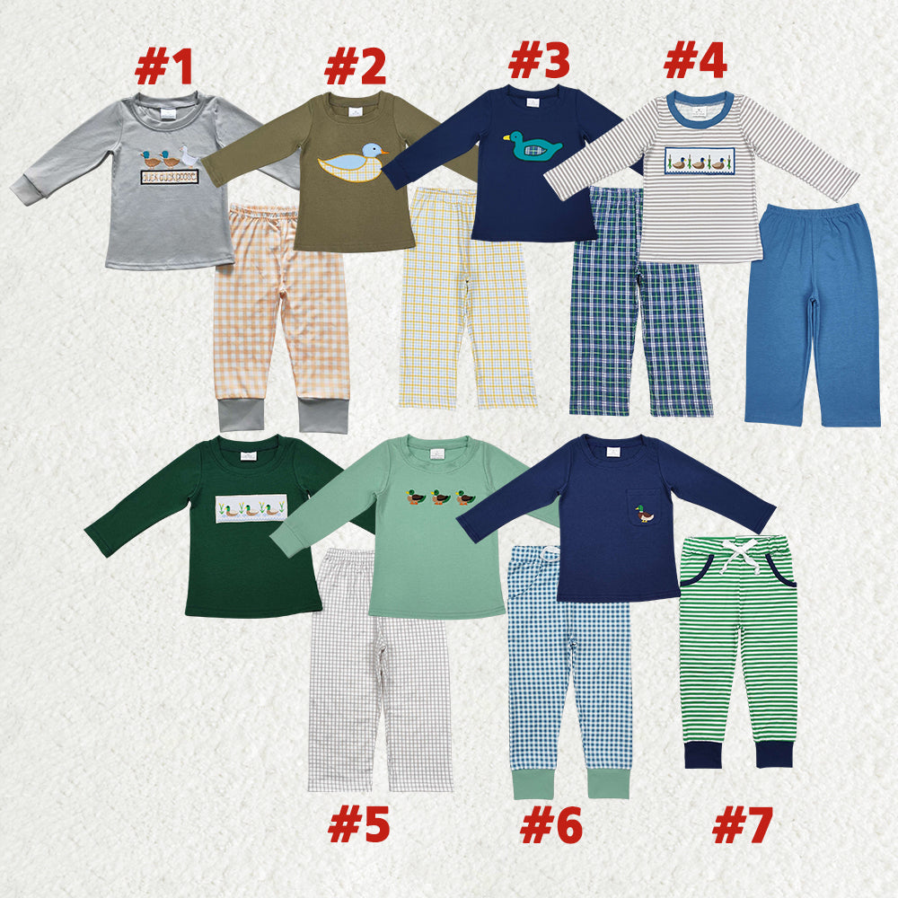 Duck Embroidery Top Pants Boys Fall Clothes Set Brothers Wear
