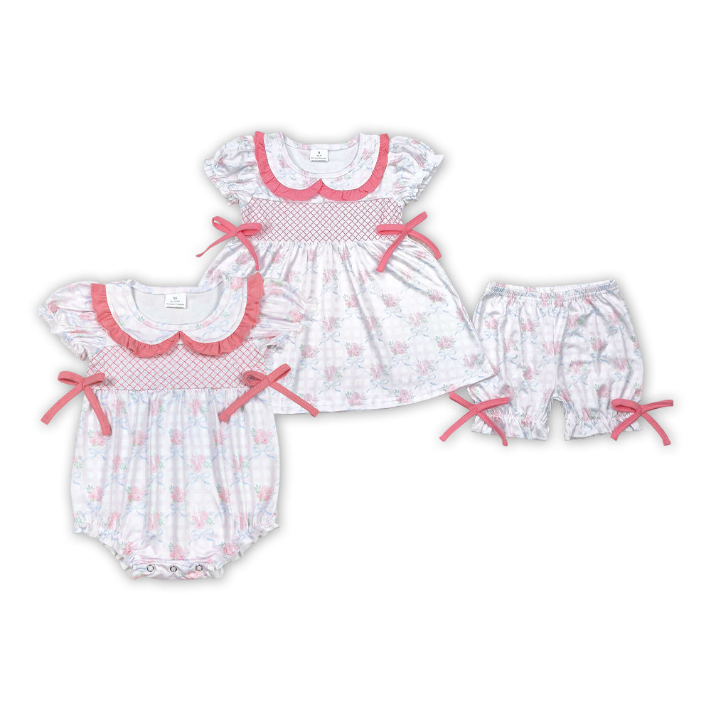 Embroidery Pink Small Flowers Print Sisters Summer Matching Clothes