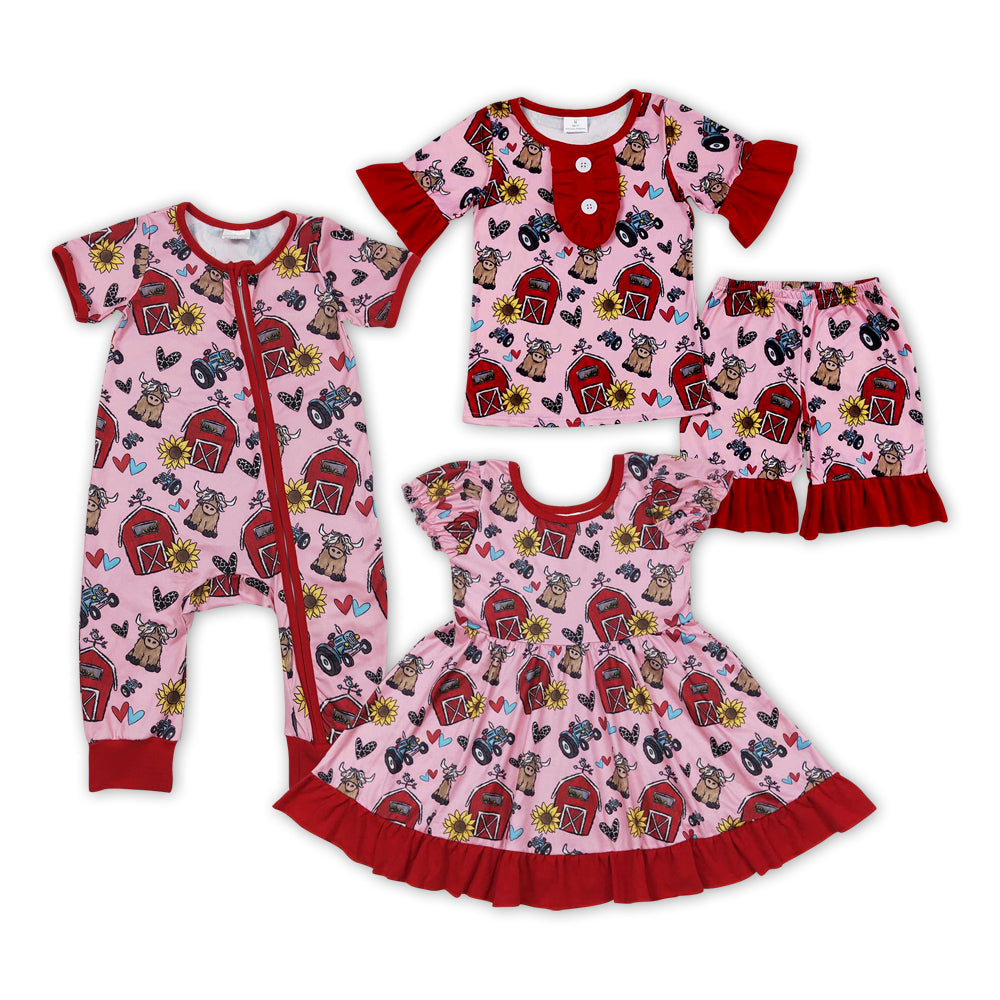 Farm Cow Sunflowers Print Sisters Summer Matching Clothes