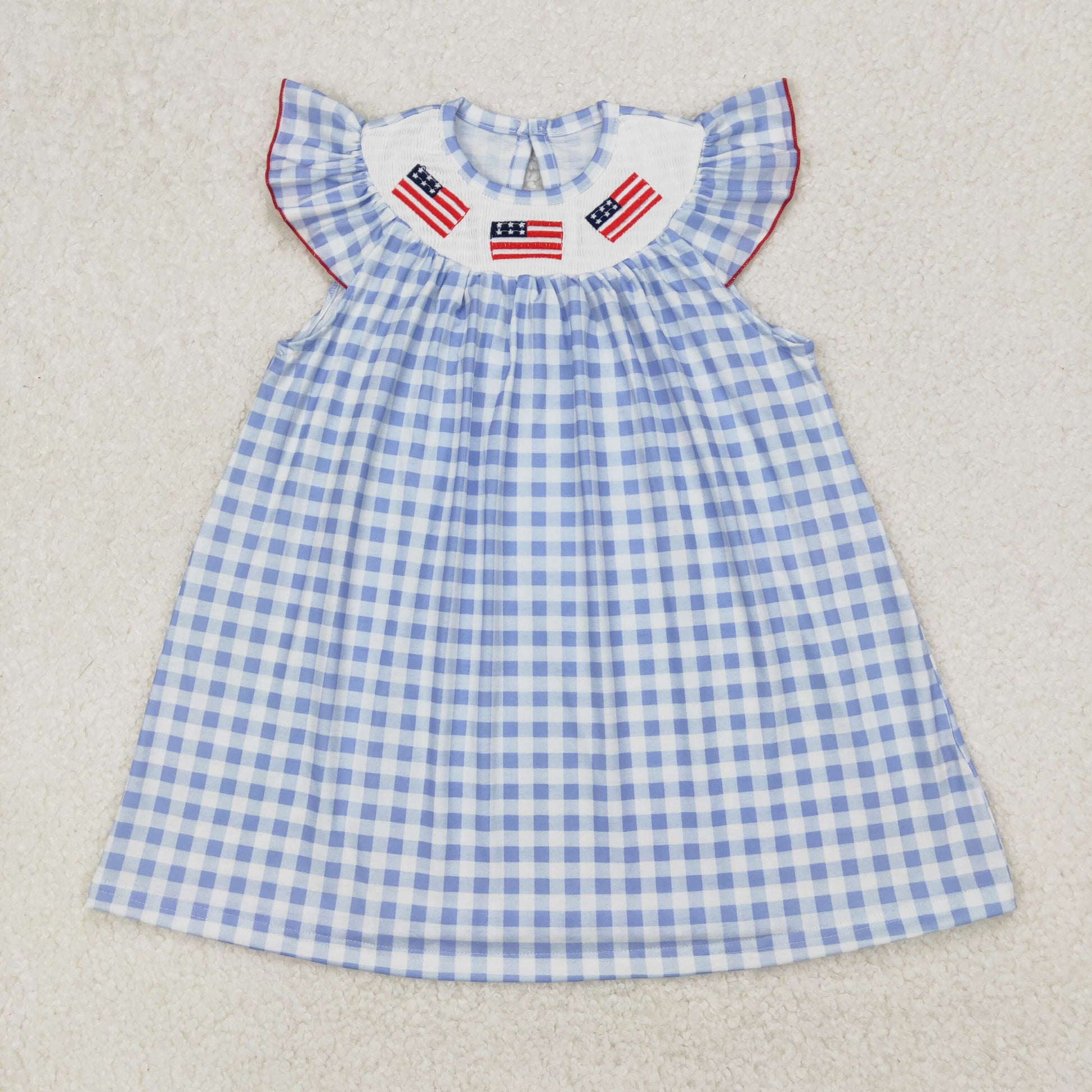 Flag Embroidery Blue Plaid Sibling 4th of July Smocked Matching Clothes