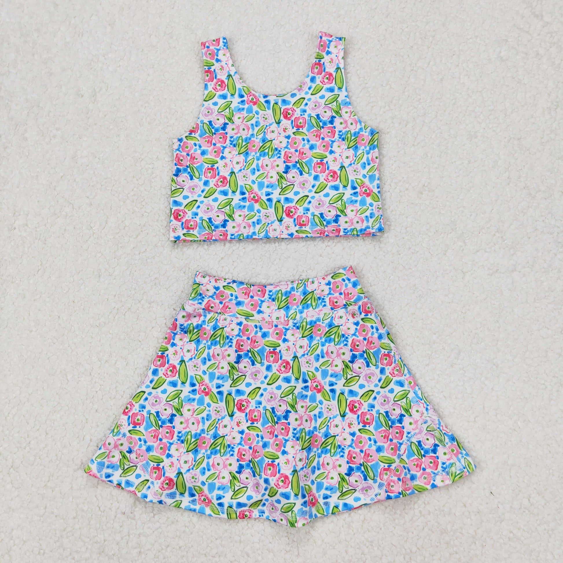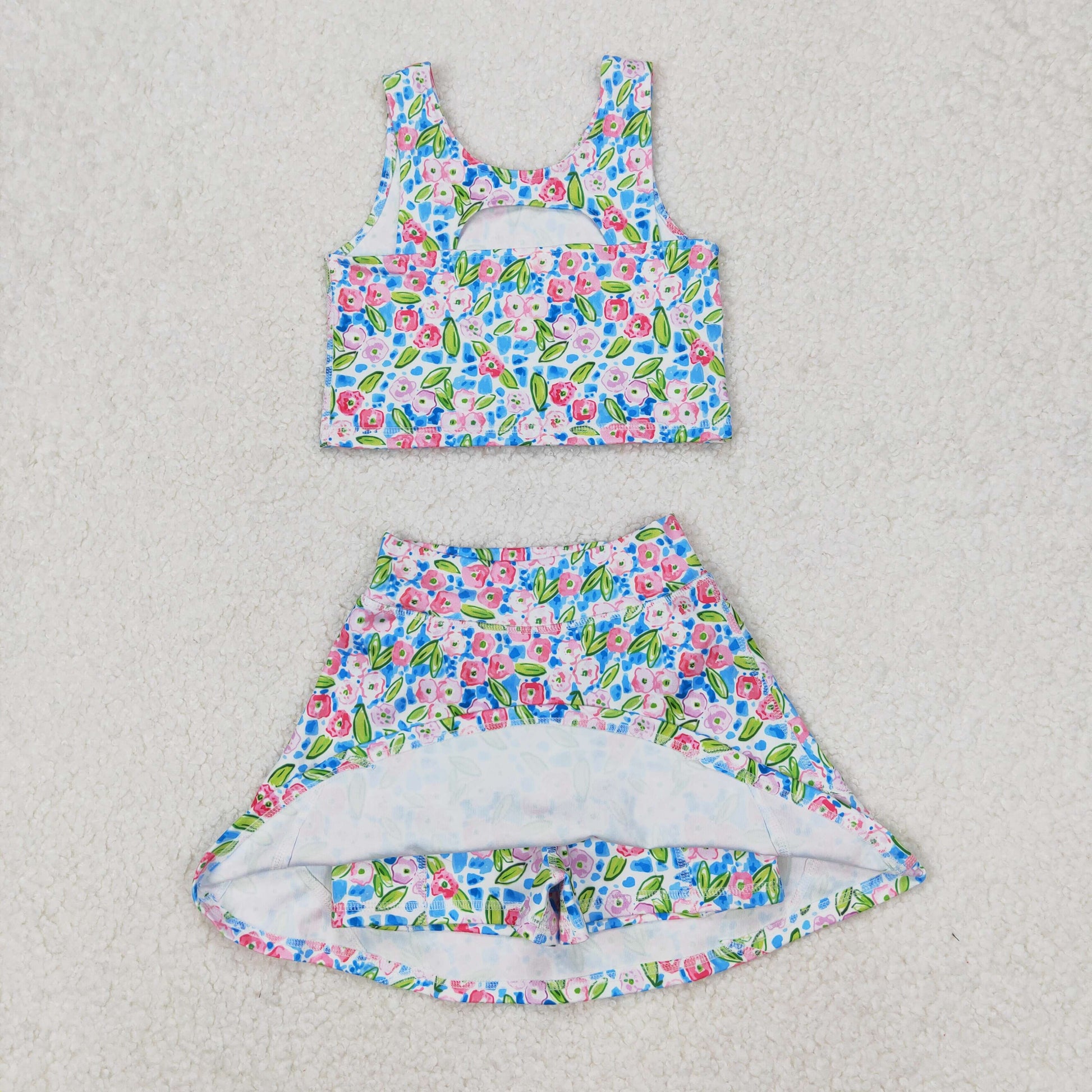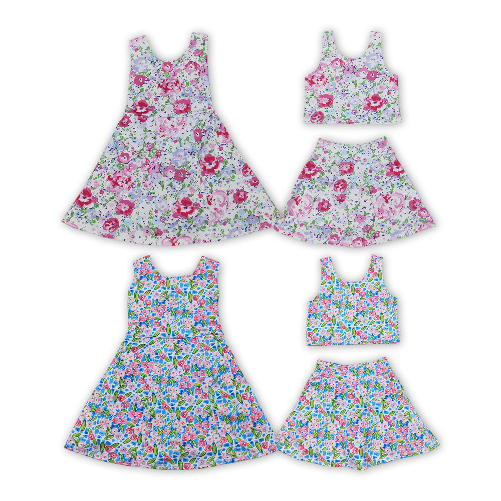 Flowers Print Girls Summer Shorts Yoga Dress & Outfits Sisters Sports Wear