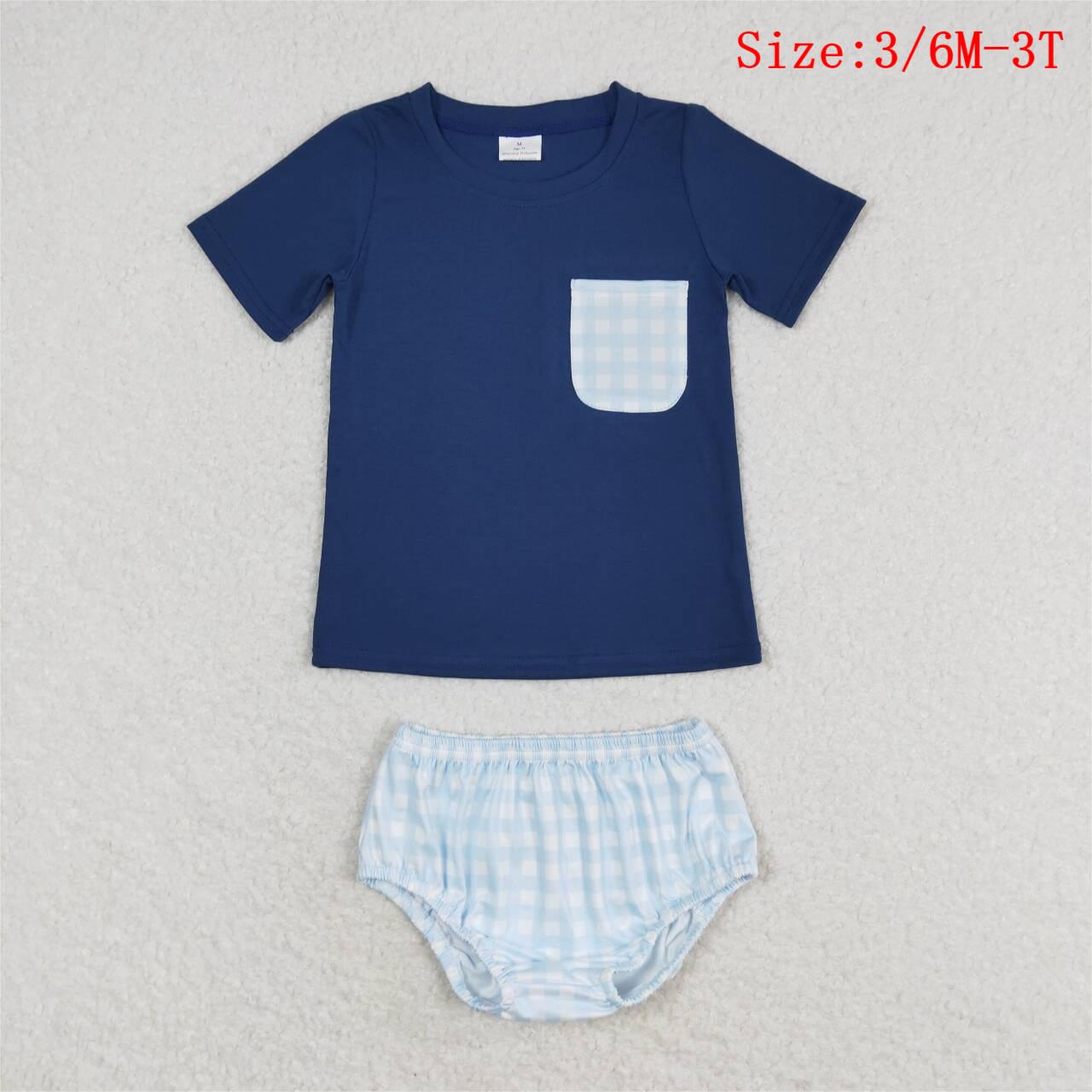 GBO0399 Blue Pocket Top Plaid Shorts Baby Boys Summer Bummie Set