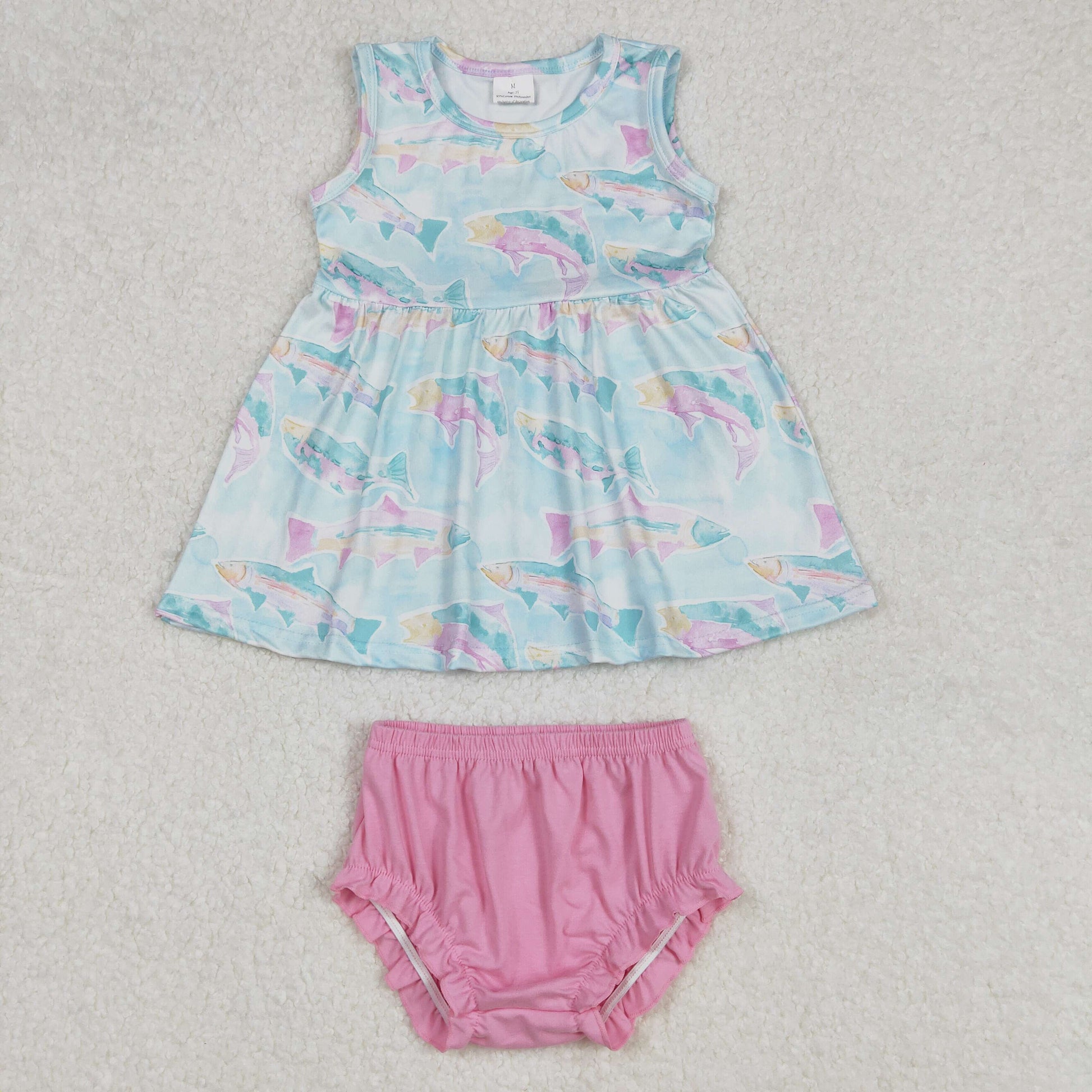 GBO0464 Colorful Fish Print Baby Girls Summer Bummie Set