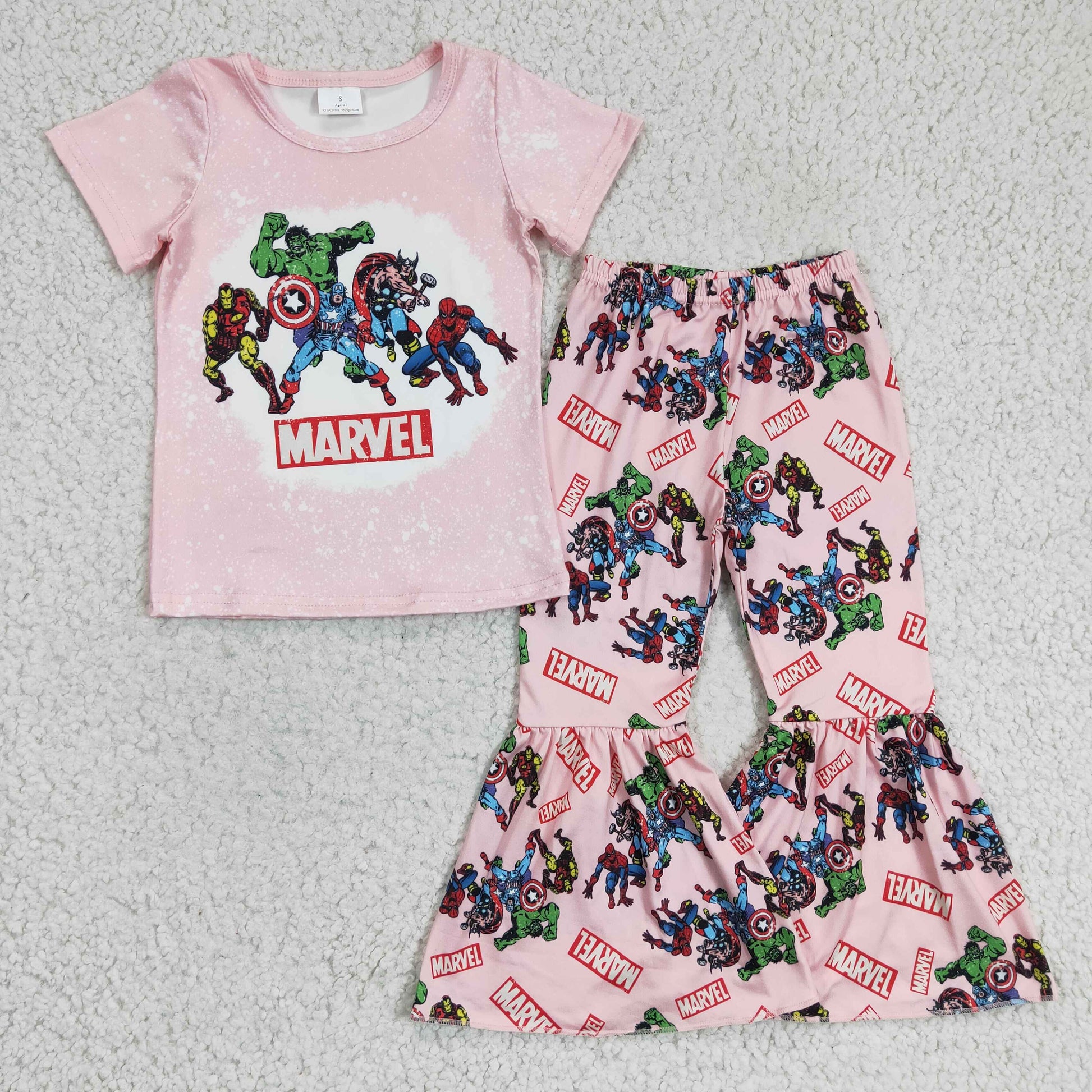 Girls cartoon hero print bell pants outfit GSPO0308