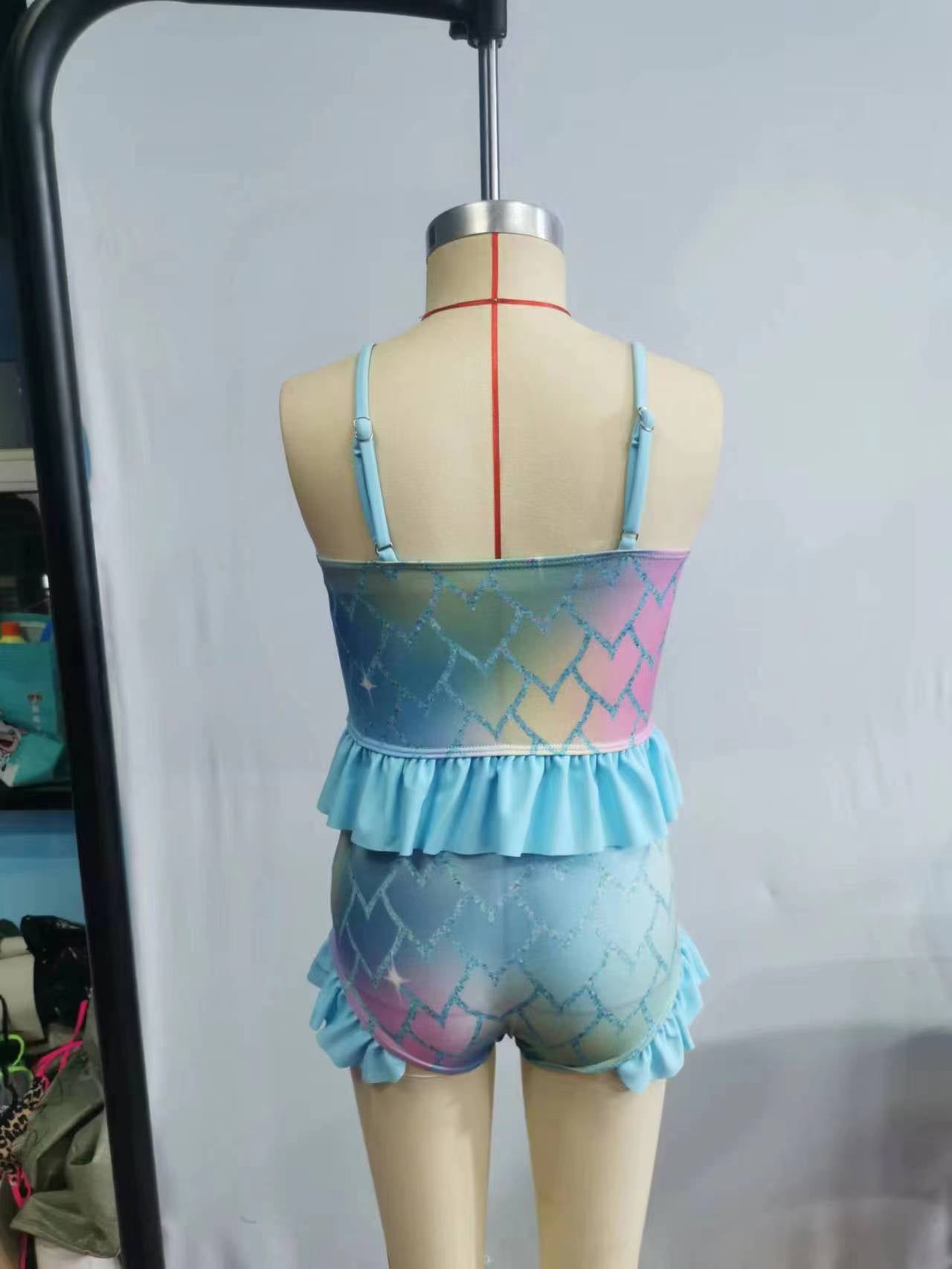 Girls colors print 2 pieces swimsuit S0061