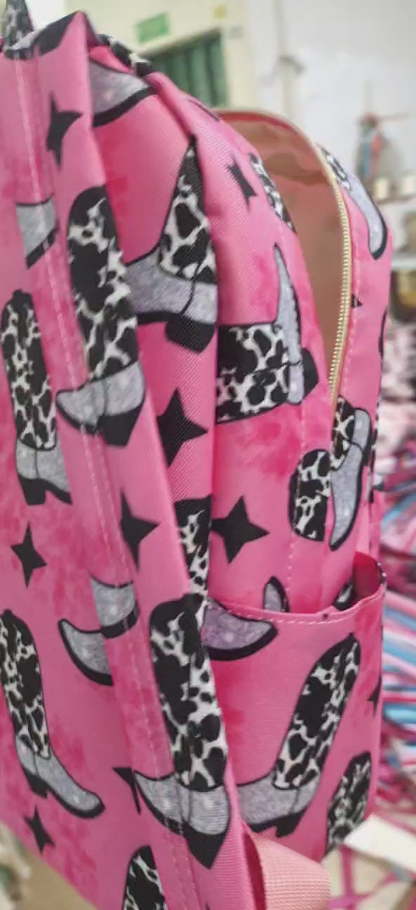 Girls cow hot pink boots print backpack BA0037