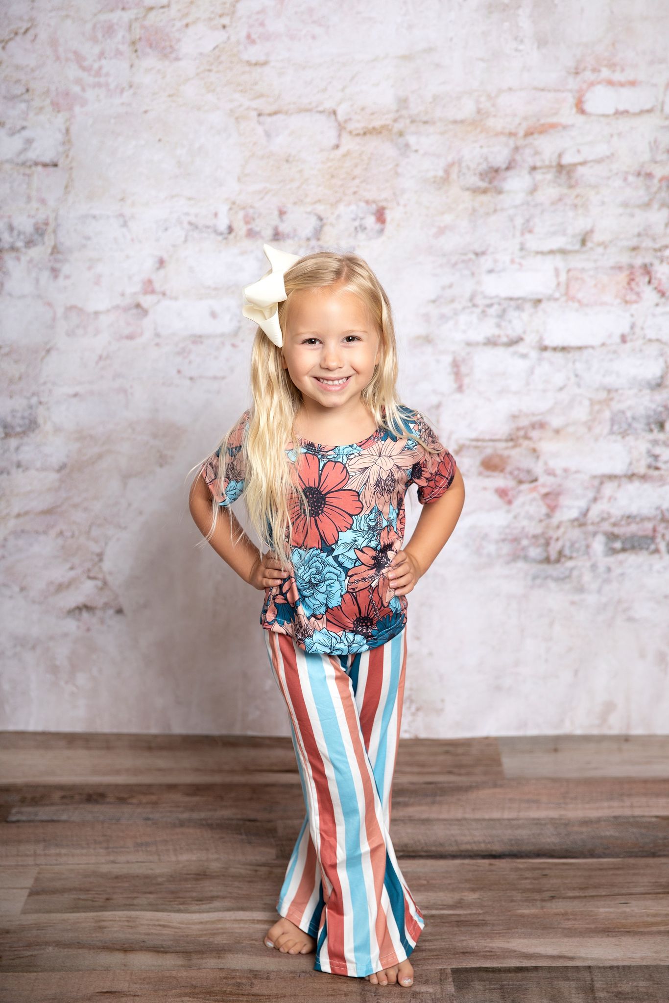 Girls floral top stripes bell pants outfits GSPO0578