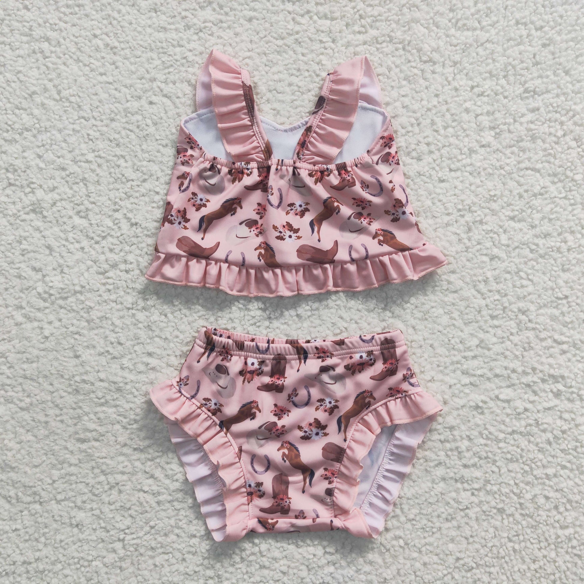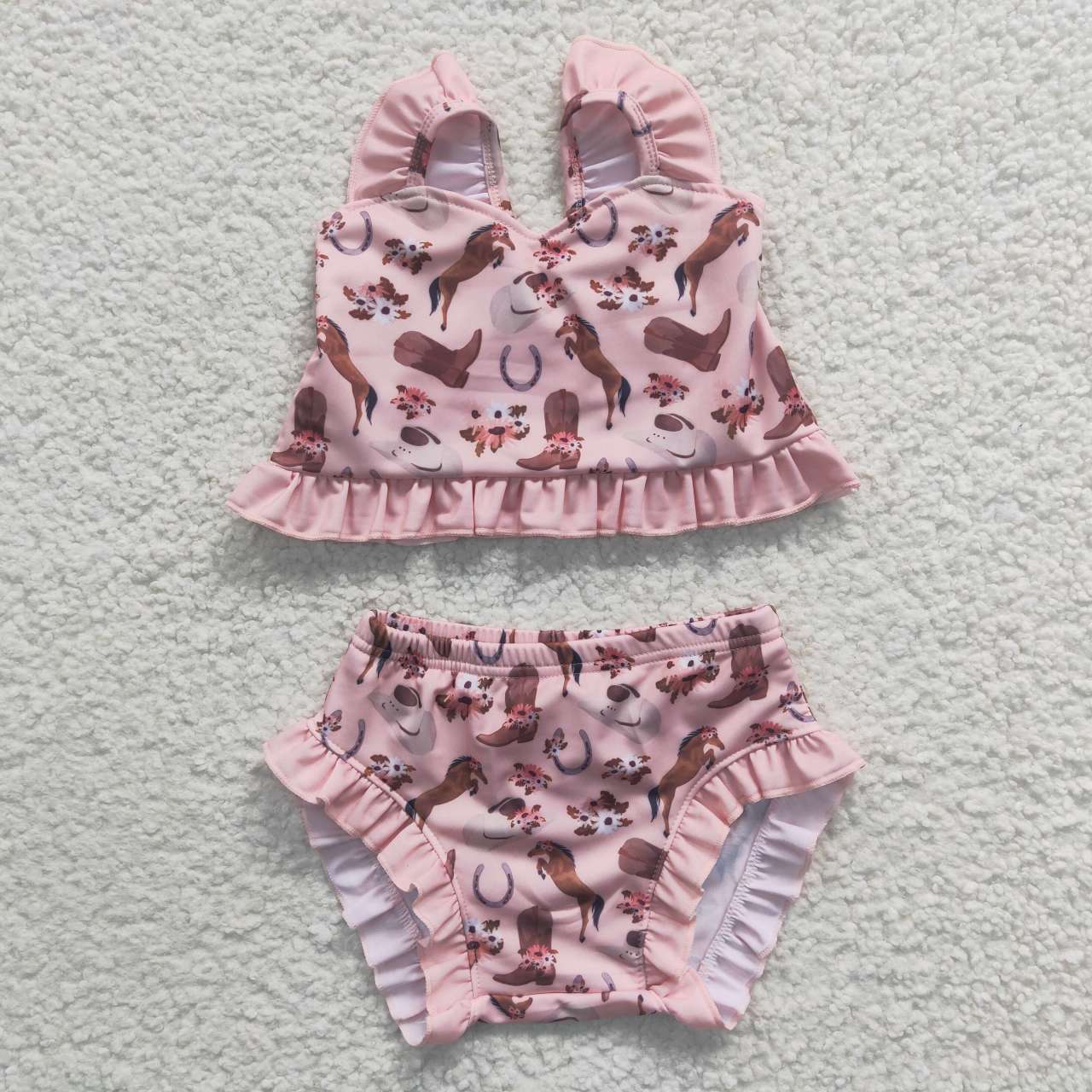 Girls horse boots hat print 2 pieces swimsuits S0107