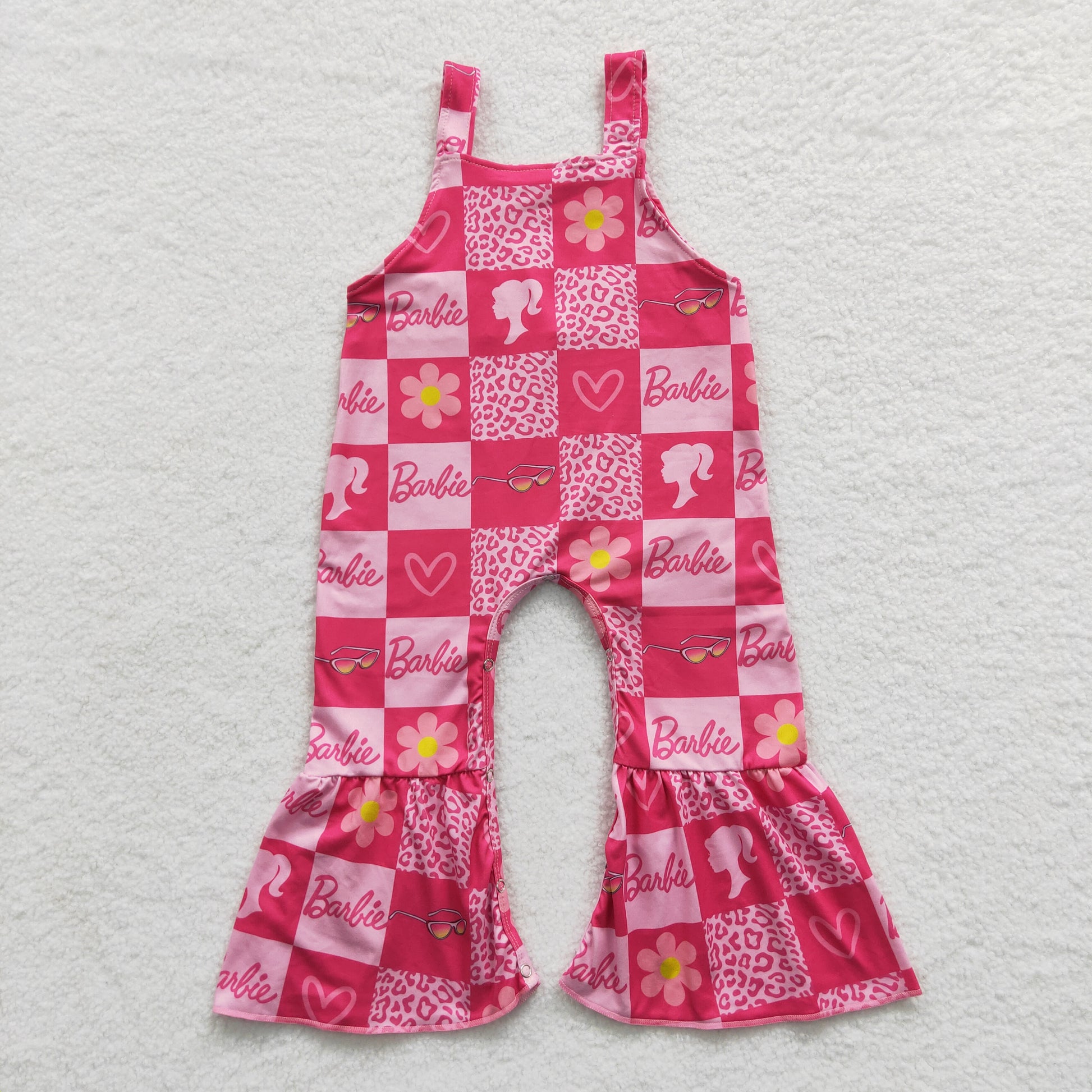 SR0382 Girls hot pink BA flowers summer jumpsuit