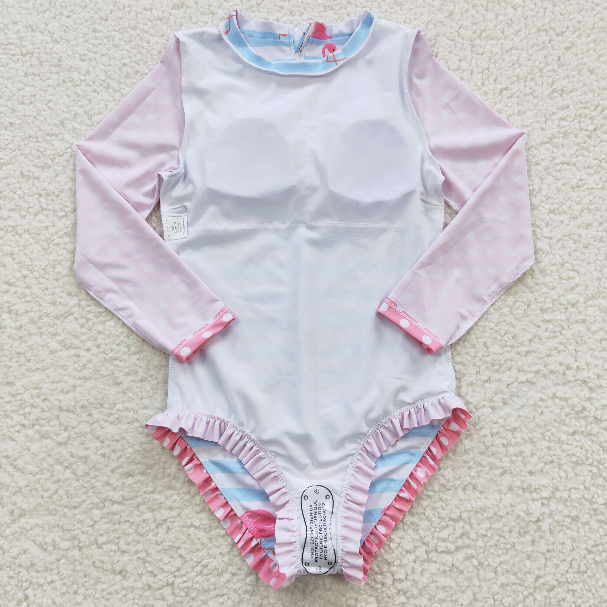 S0140 Girls long sleeve flamingo print 1 pieces swimsuits