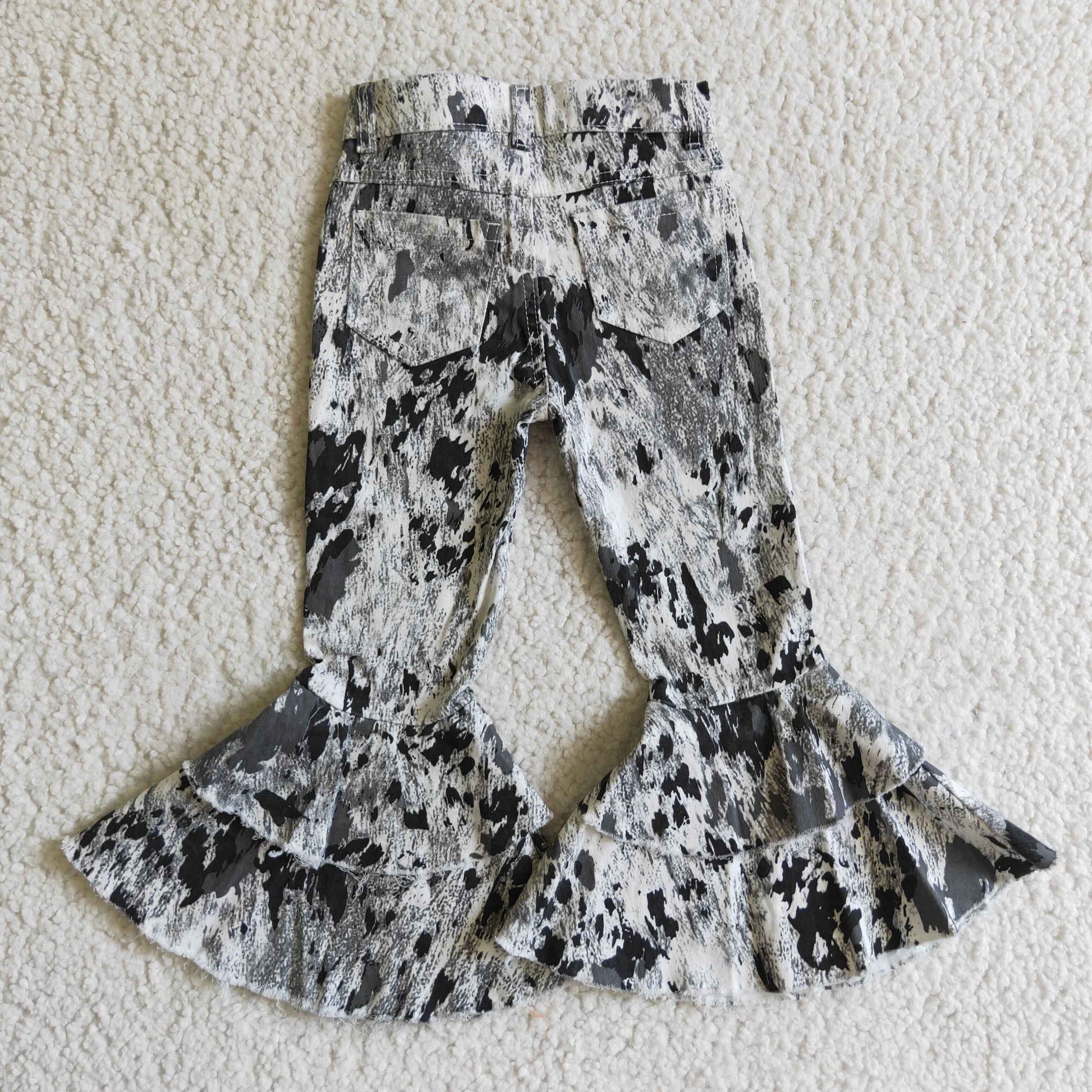Girls long sleeve grey velvet top denim pants outfit GLP0337