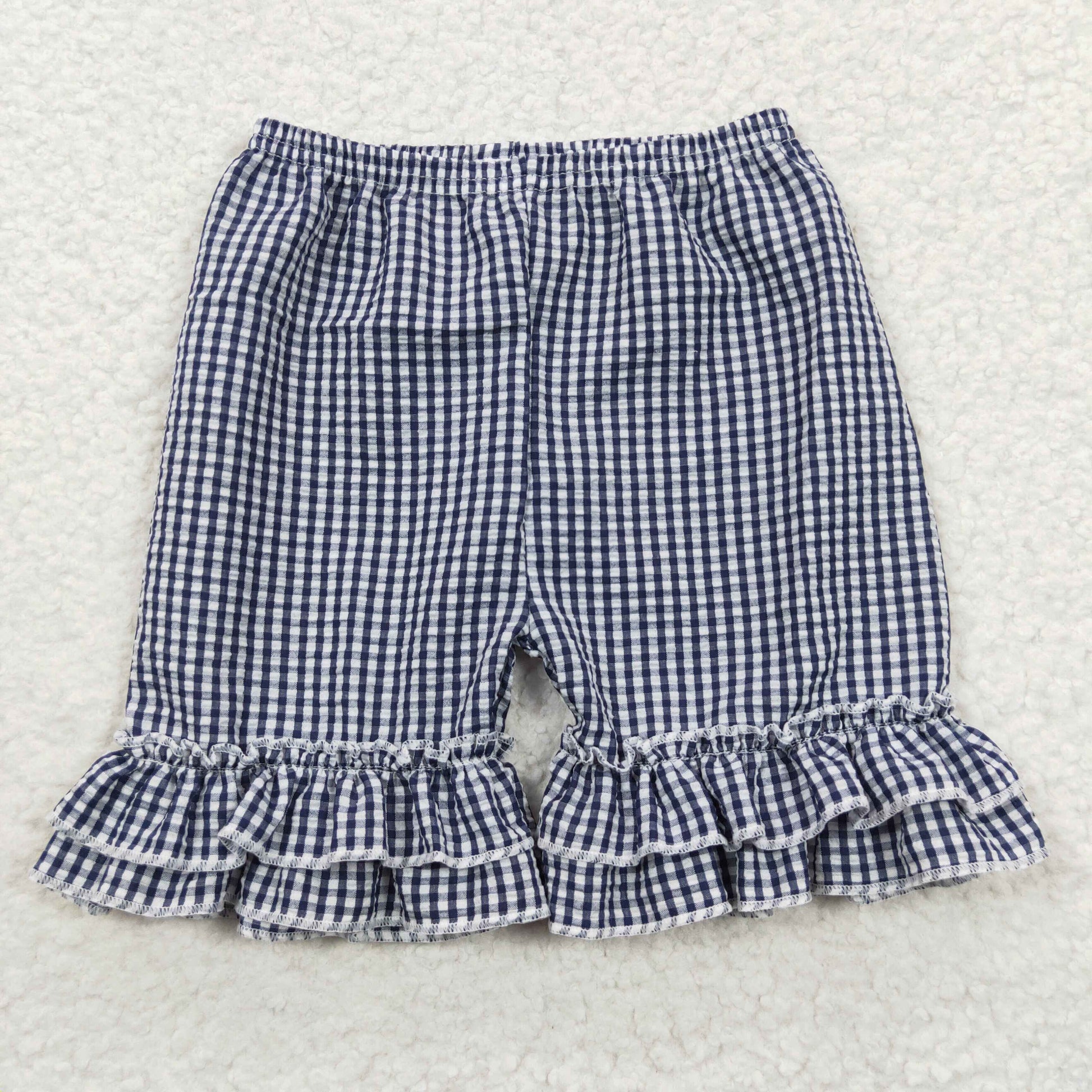Girls navy plaid ruffles seersucker summer shorts SS0068