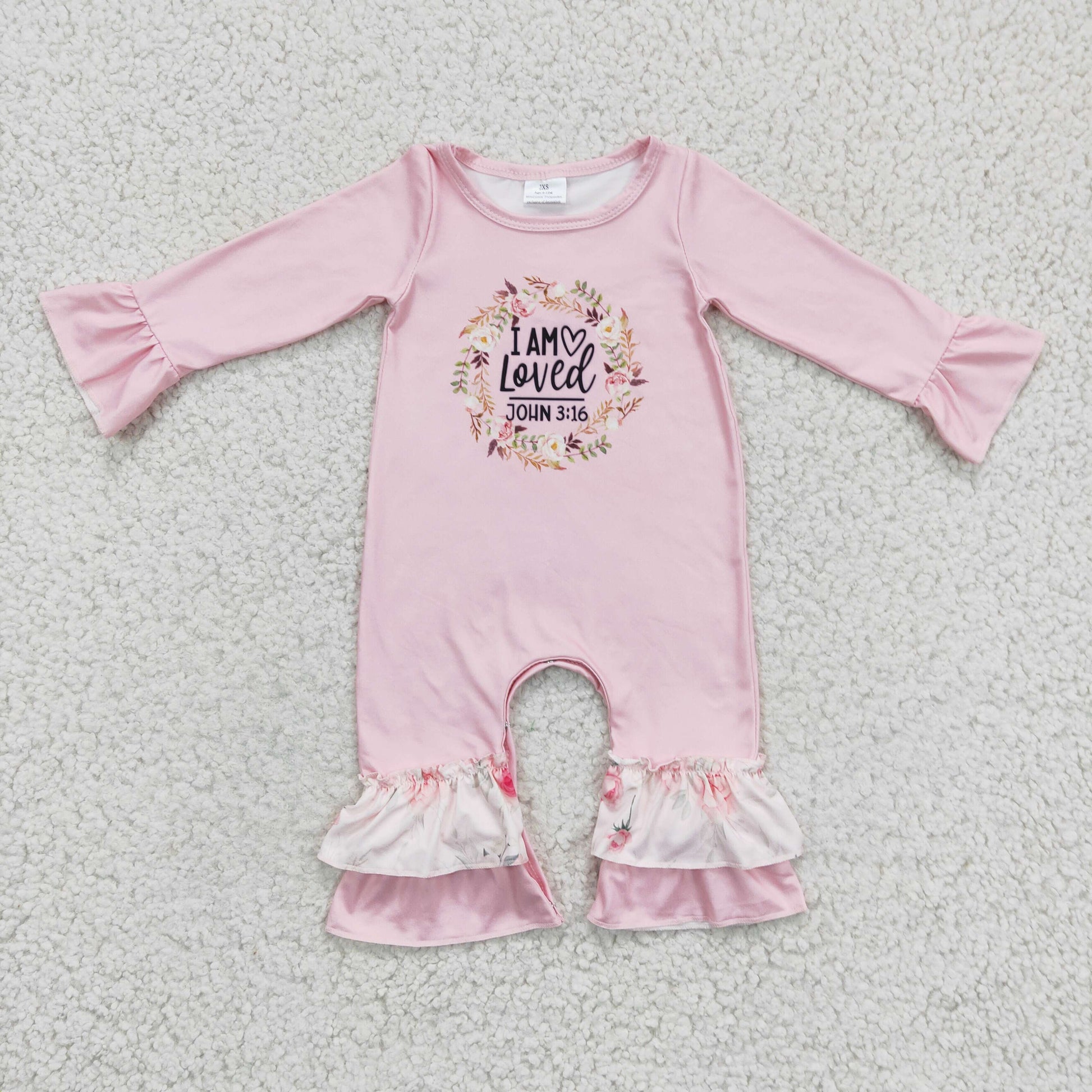 Girls pink floral print romper LR0217