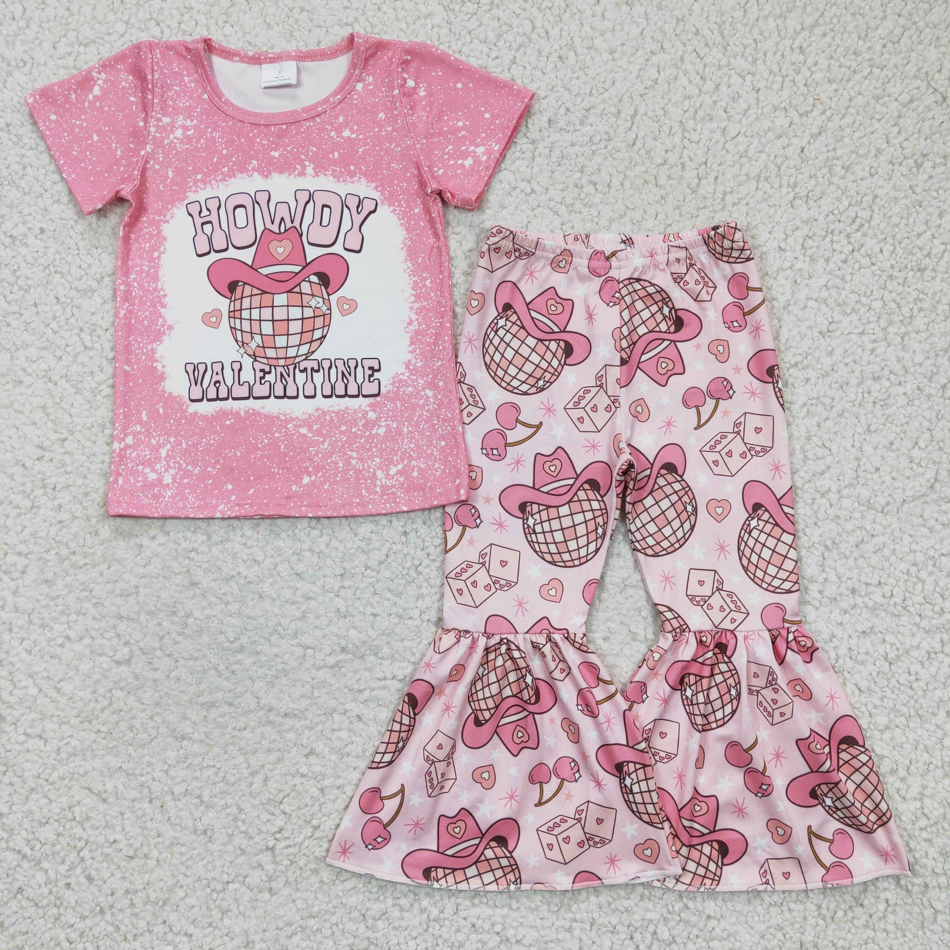Girls pink HOWDY VALENTINE print bell pants outfit GSPO0364