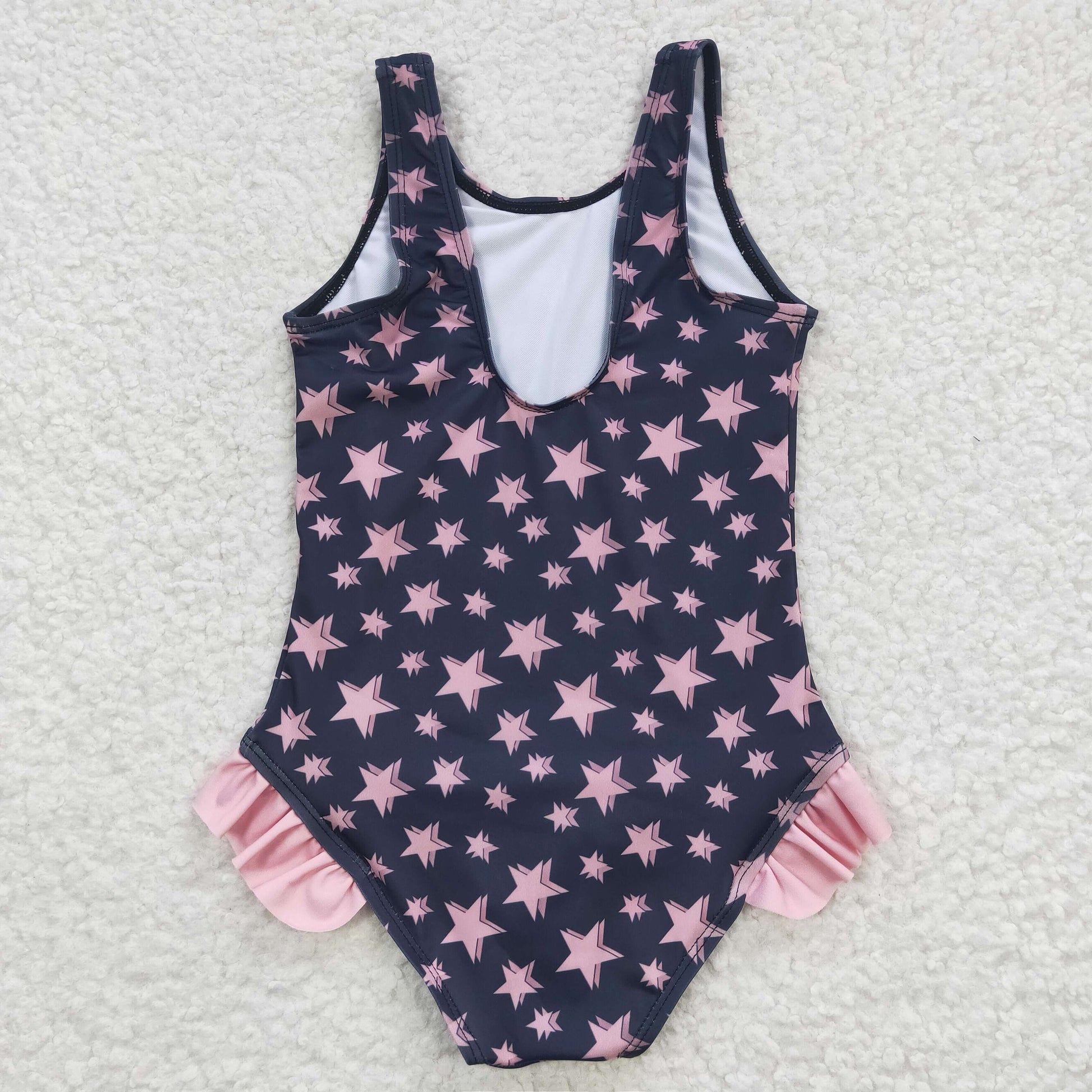 Girls pink star print swimsuit S0048