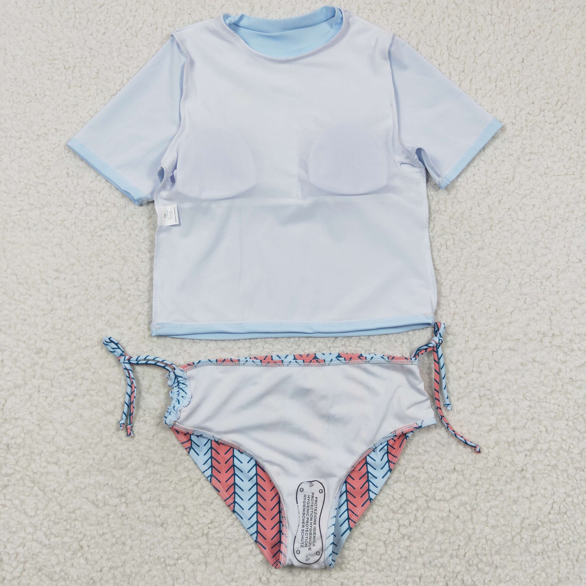Girls rainbow print short sleeve 2pieces swimsuits S0115