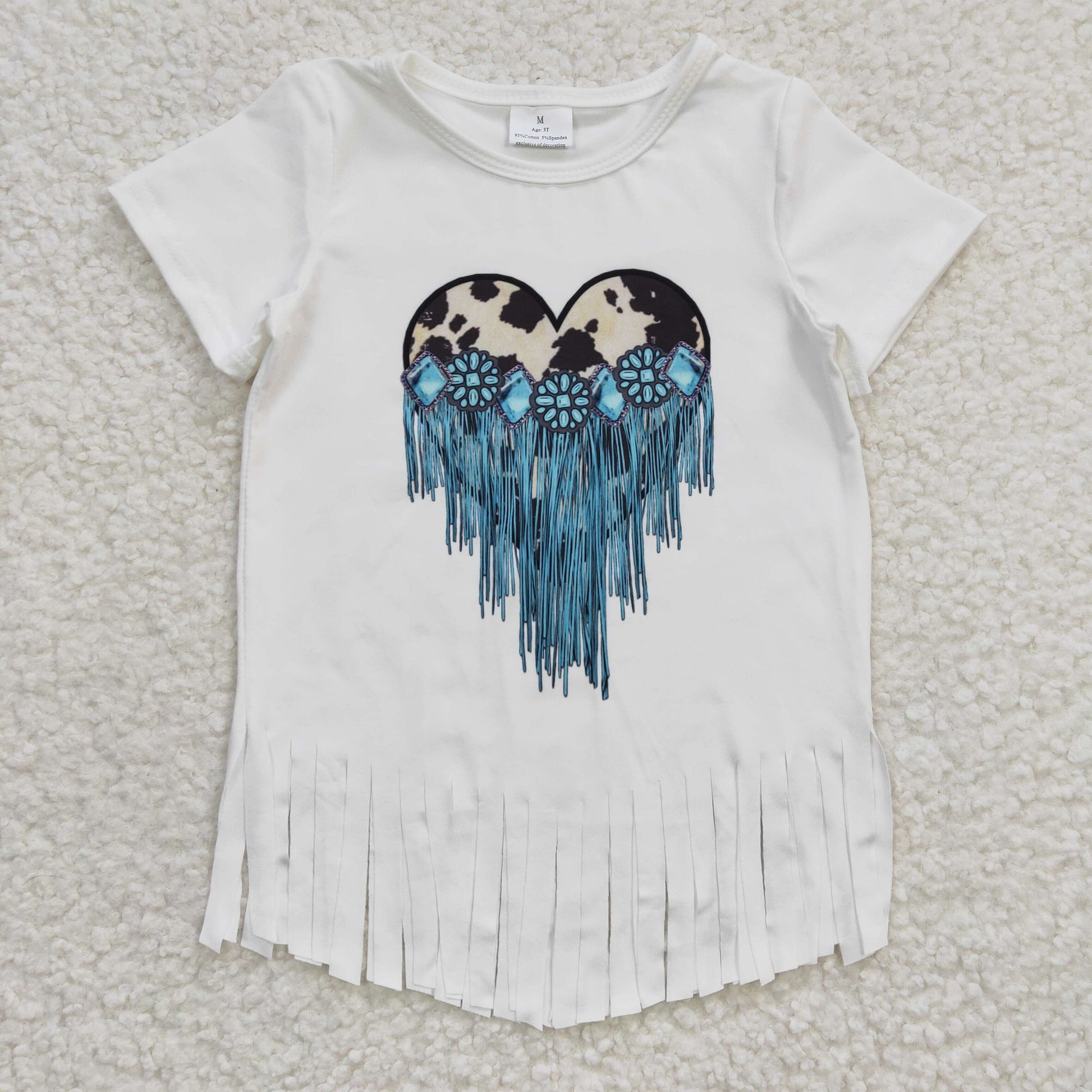Girls turquoise print tassels top GT0137