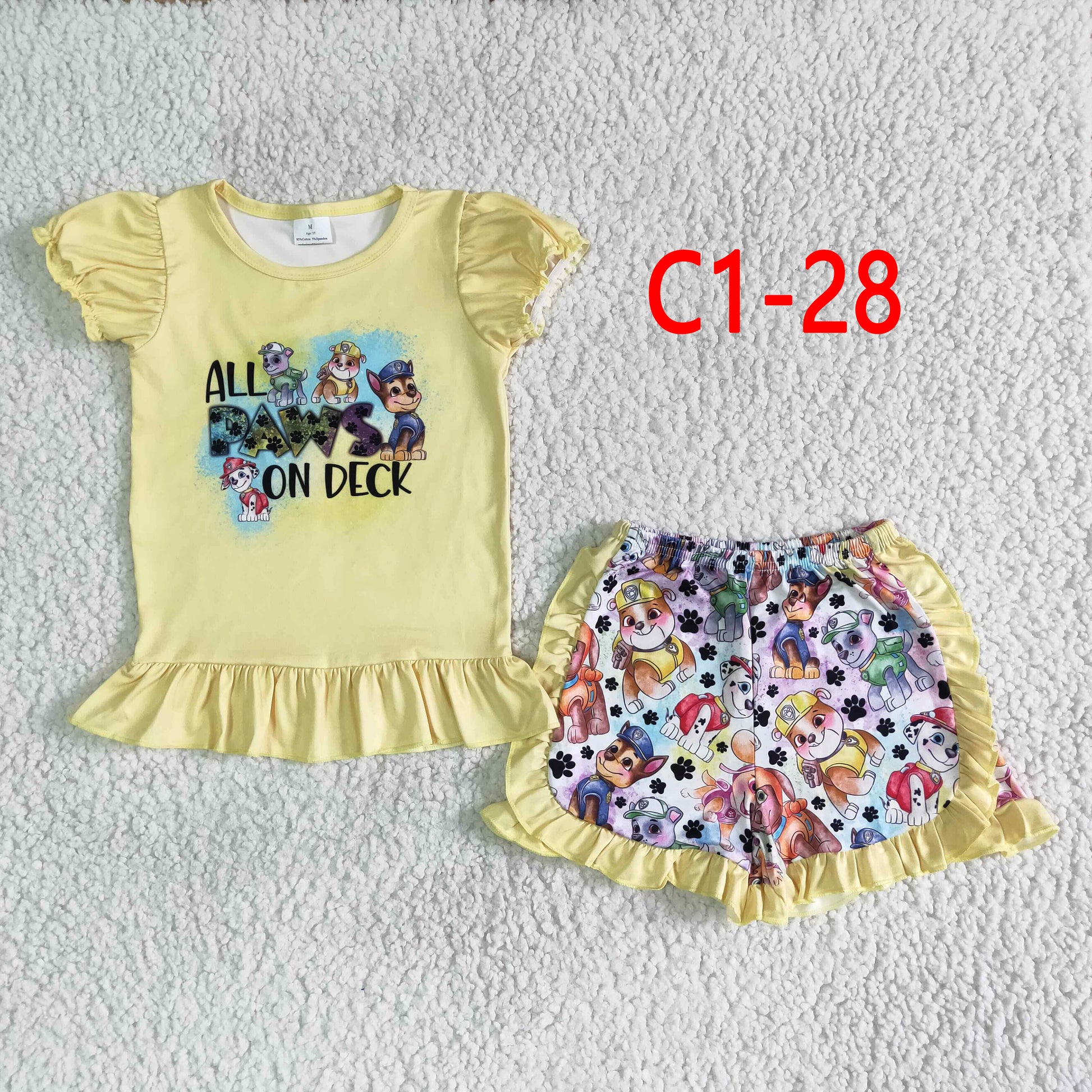 (Promotion)Girls yellow cartoon dog ruffles shorts summer outfits C1-28