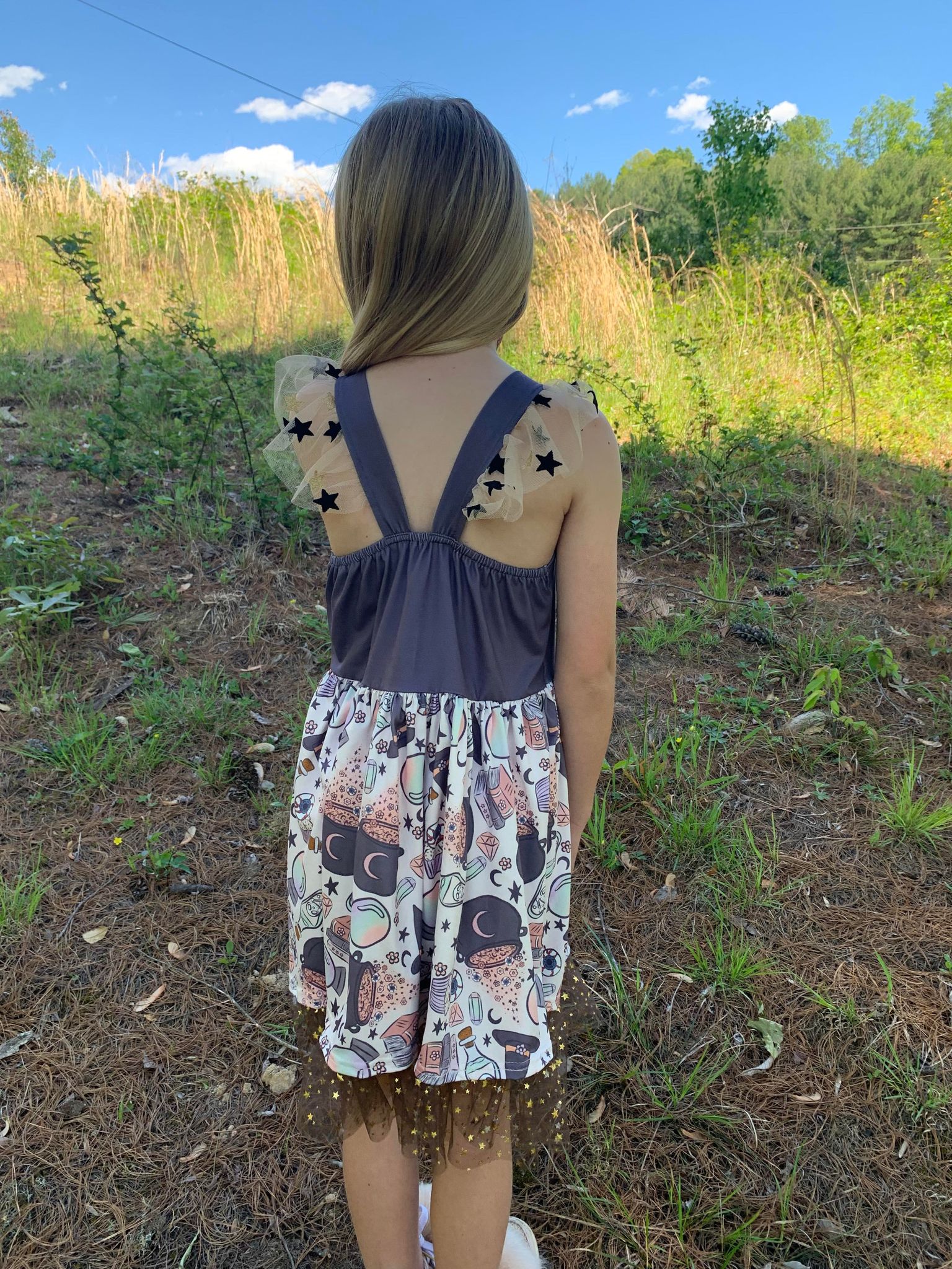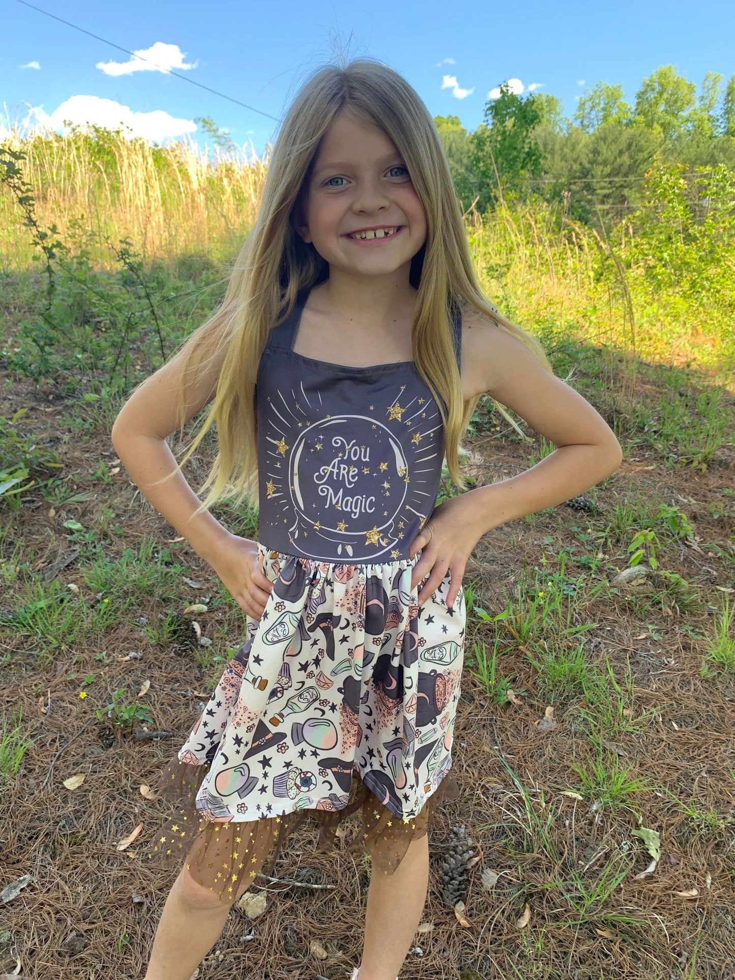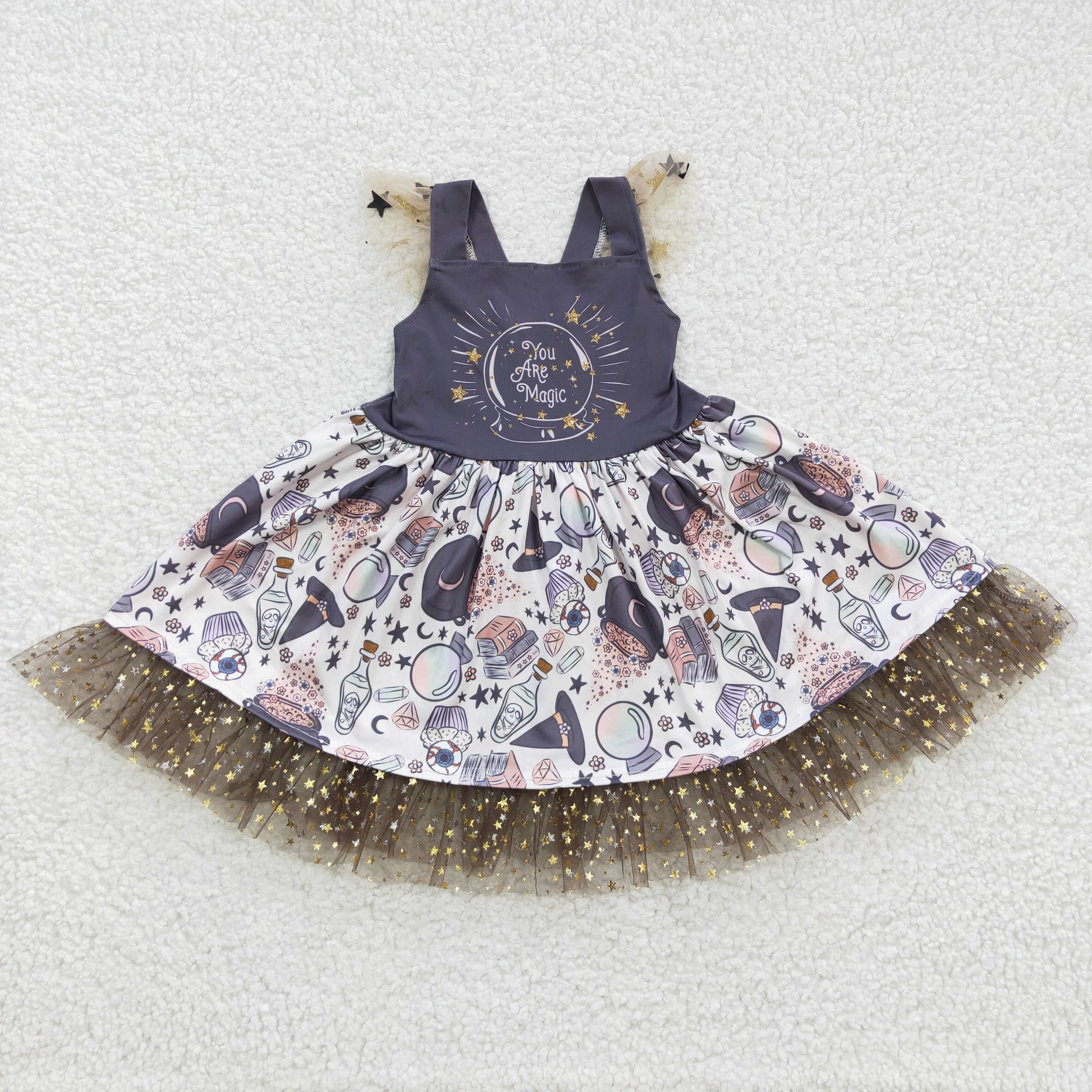 GSD0255 Girls YOU ARE MAGIC print tulle ruffles dress