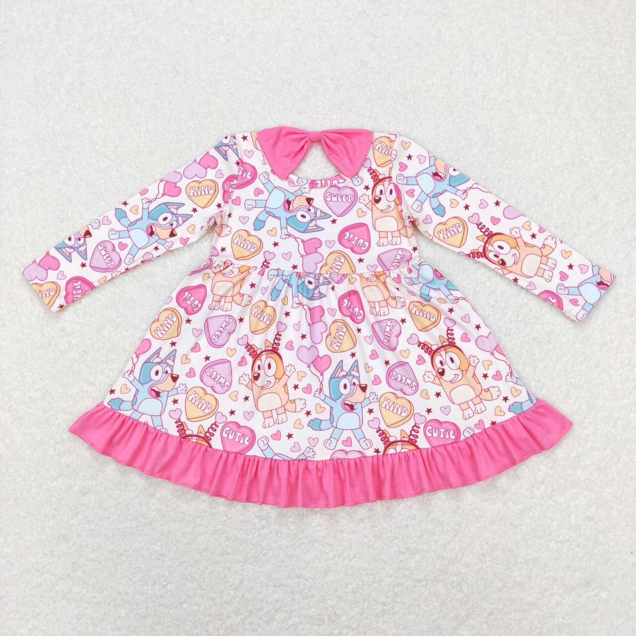 GLD0497 Cartoon Dog Heart Print Girls Valentine's Dress