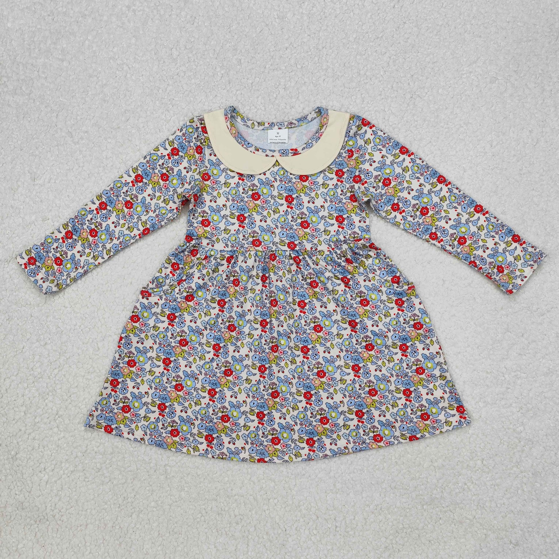 GLD0811 Flowers Print Girls Long Sleeve Knee Length Dress