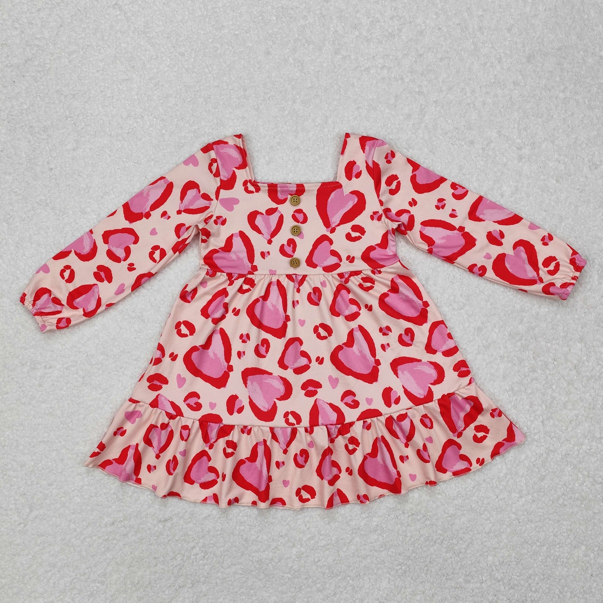 GLD0873 Heart Print Girls Long Sleeve Valentine's Day Knee Length Dress