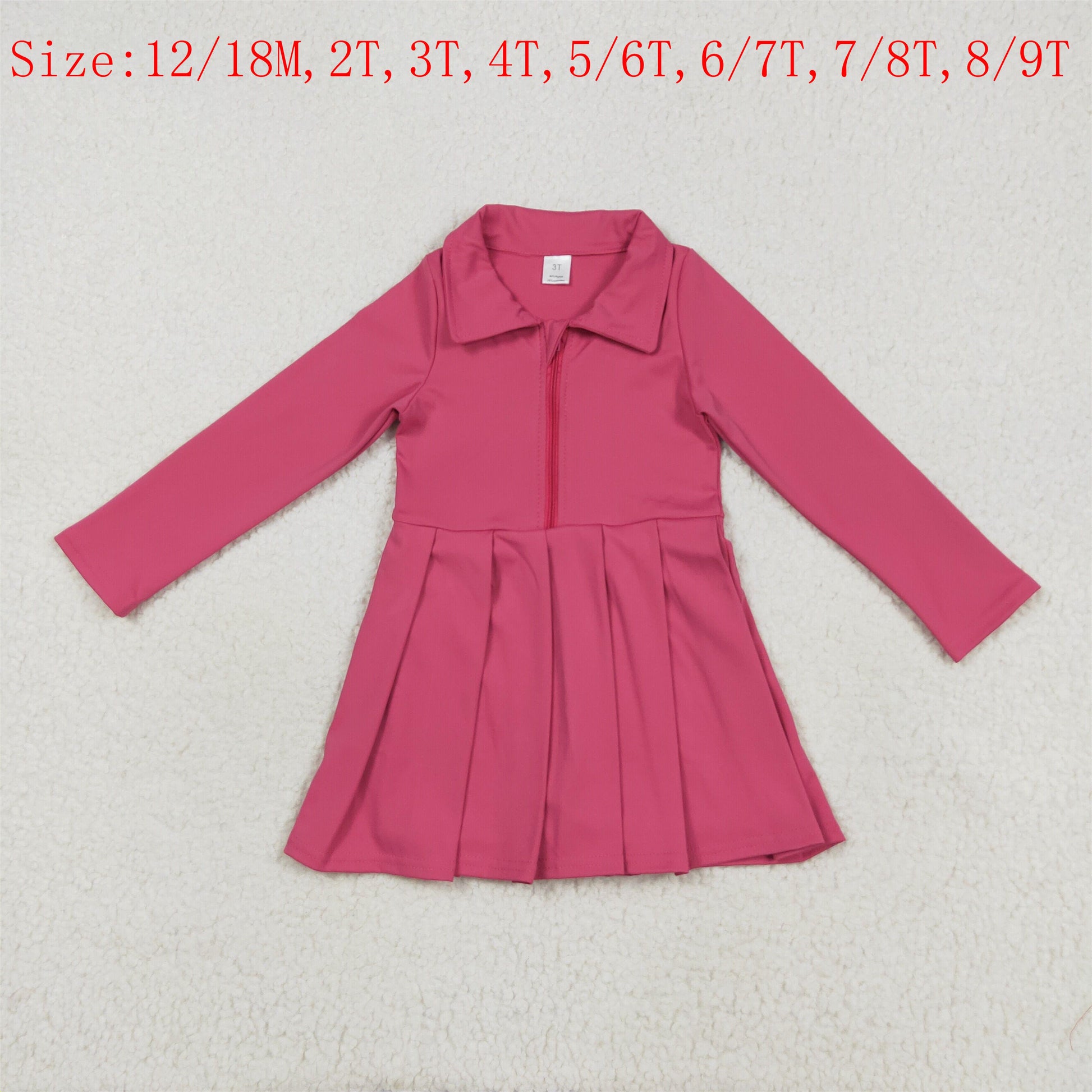 GLD1146 Hot Pink Color Girls Long Sleeve Zipper Knee Length Yoga Dress
