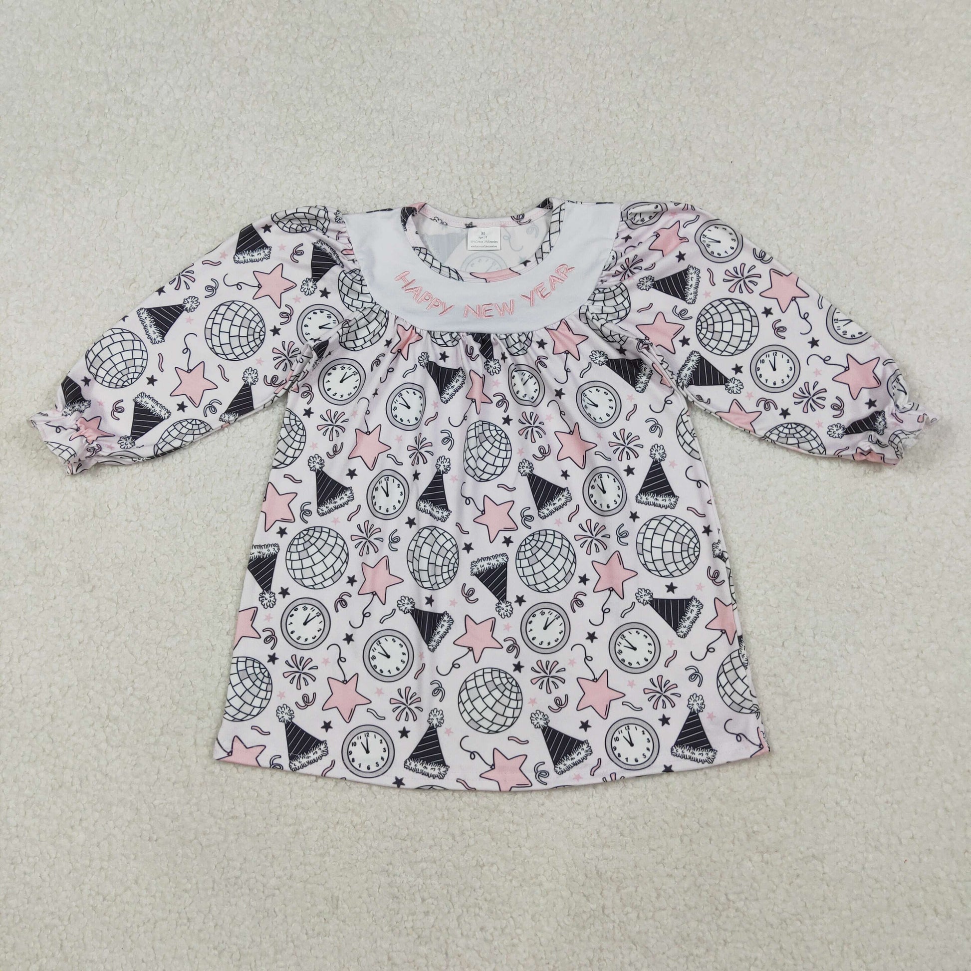 GLD1231 Happy New Year Embroidery Stars Print Girls Knee Length Dress