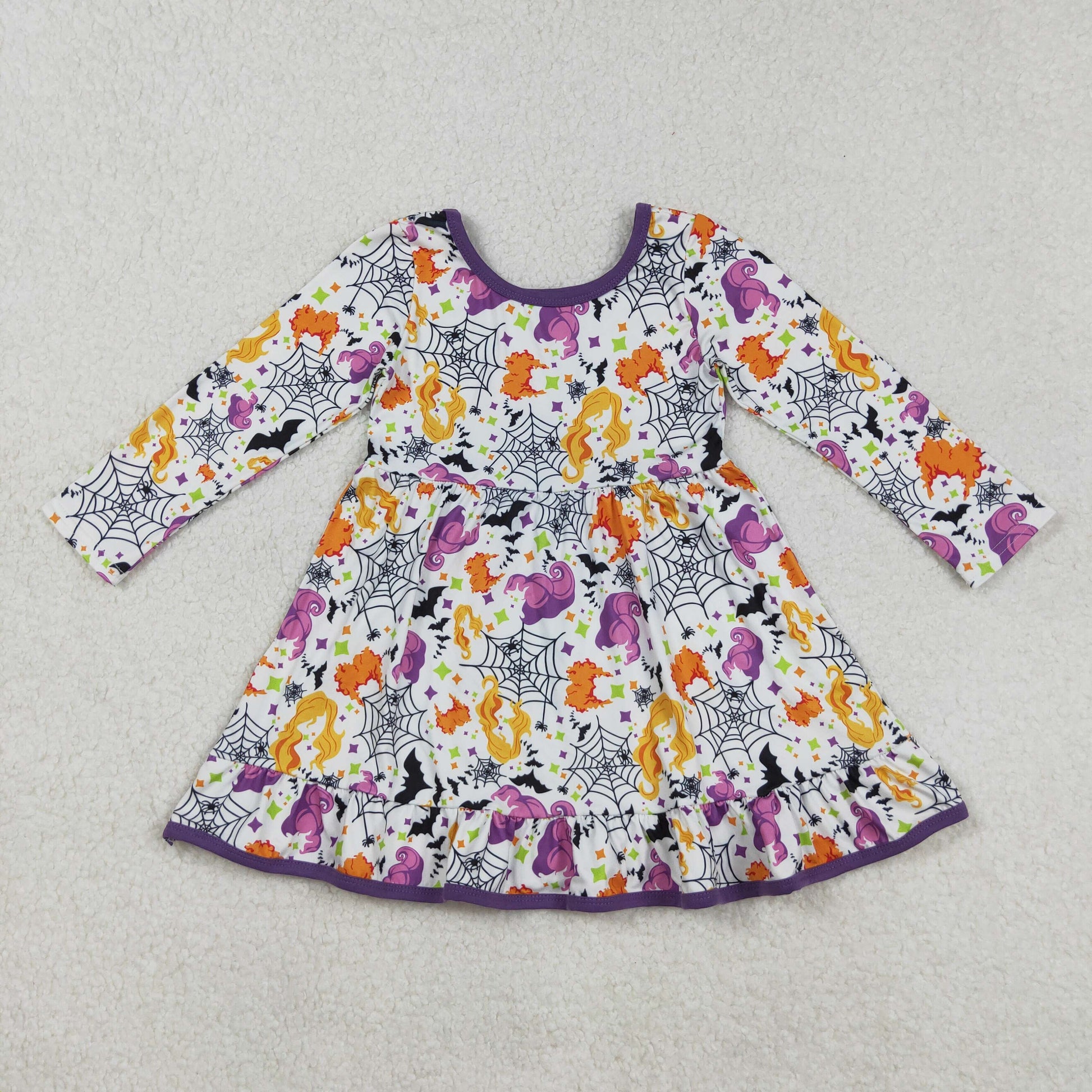 GLD1249 Witch Print Girls Halloween Knee Length Dress