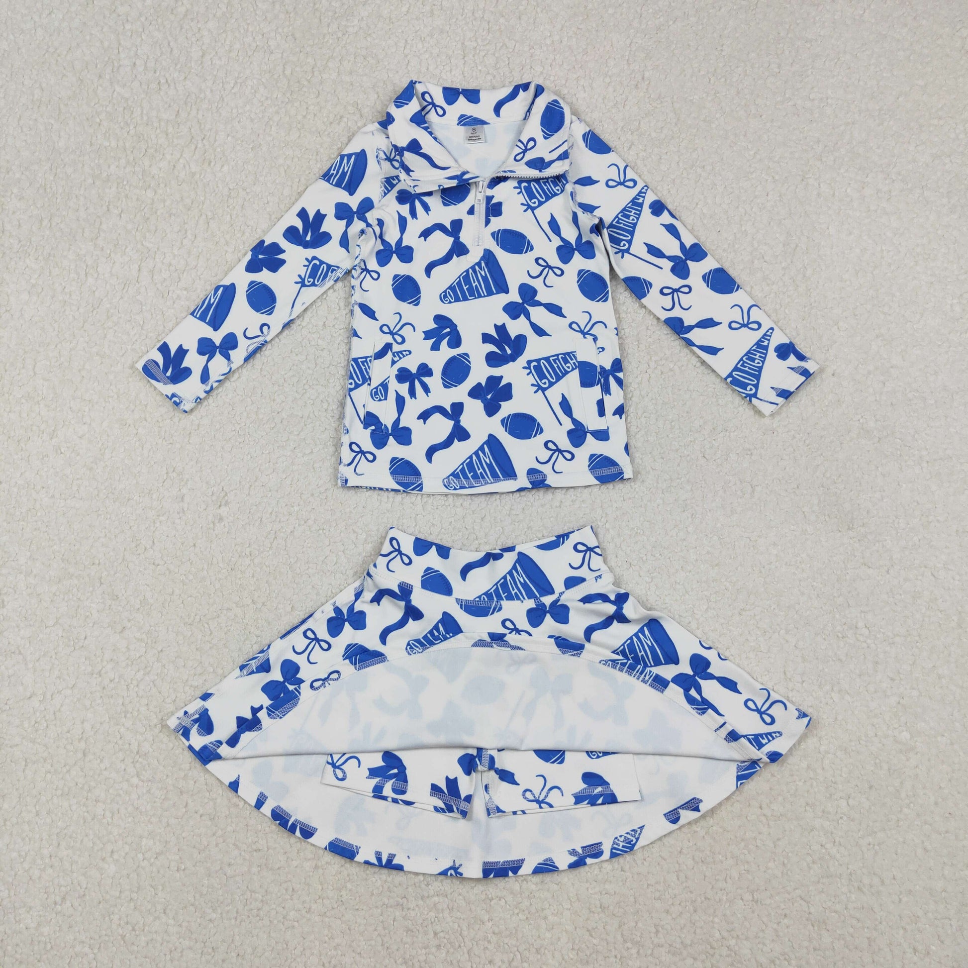 GLD1283 Go Team Cheer Bows Blue Tank Top Skirts Shorts Girls Summer Yoga Outfits