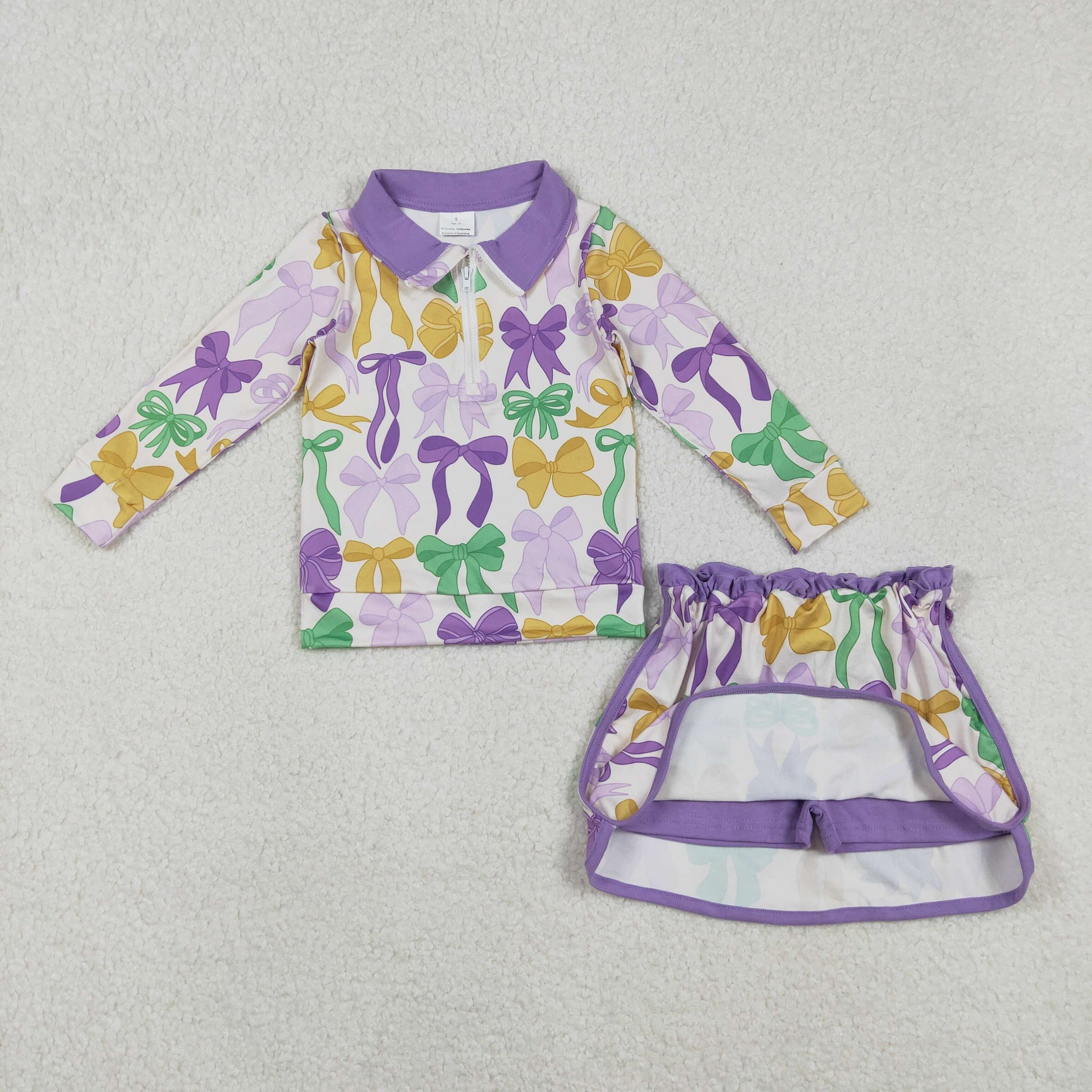 GLD1333 Colorful Bows Zipper Top Skirts Shorts Girls Mardi Gras Clothes Set