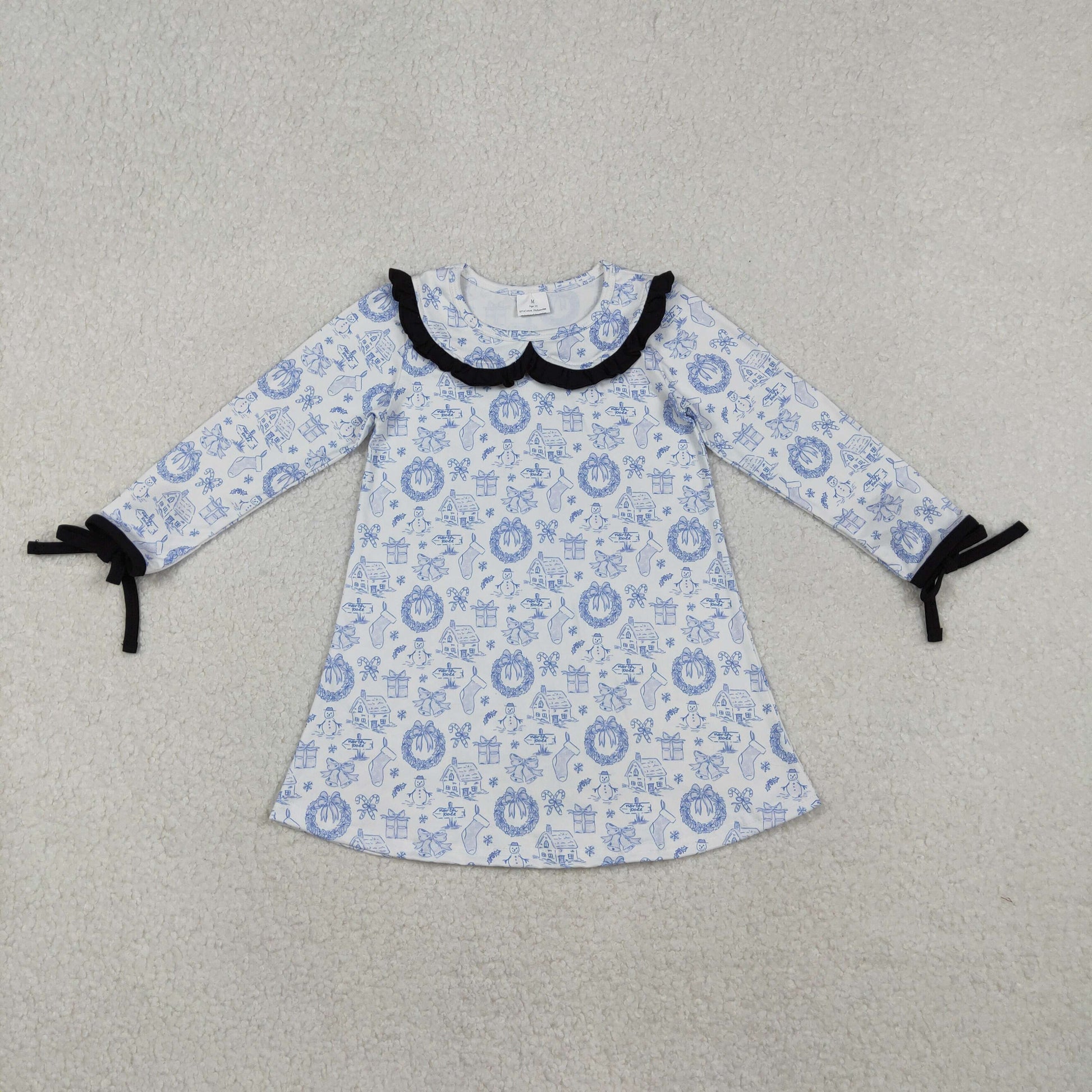 GLD1346 Small Town Blue Print Girls Christmas Knee Length Dress