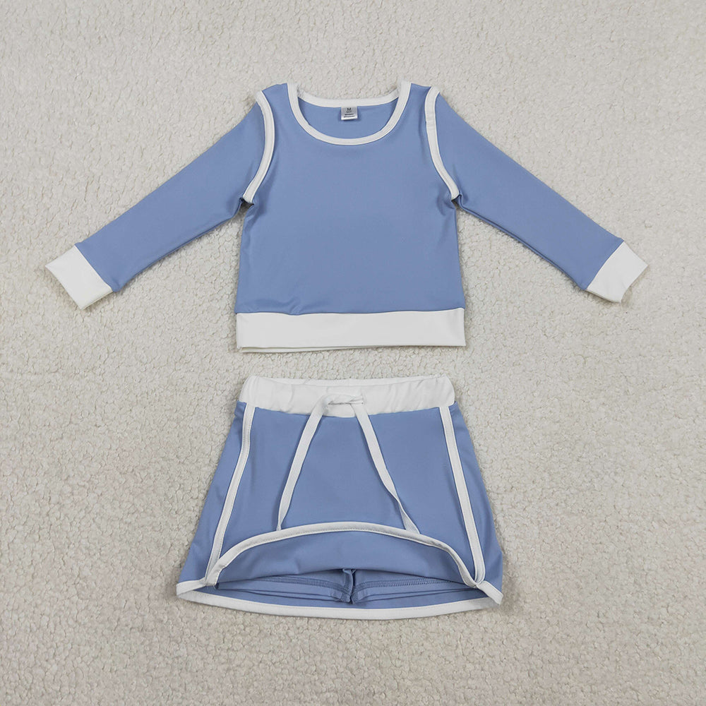 GLD1483 Blue Long Sleeve Top Skirts Shorts Girls Yoga Clothes Set