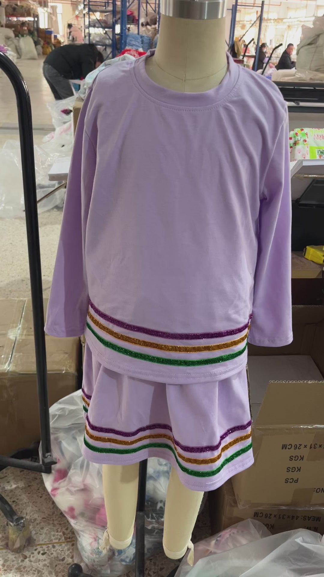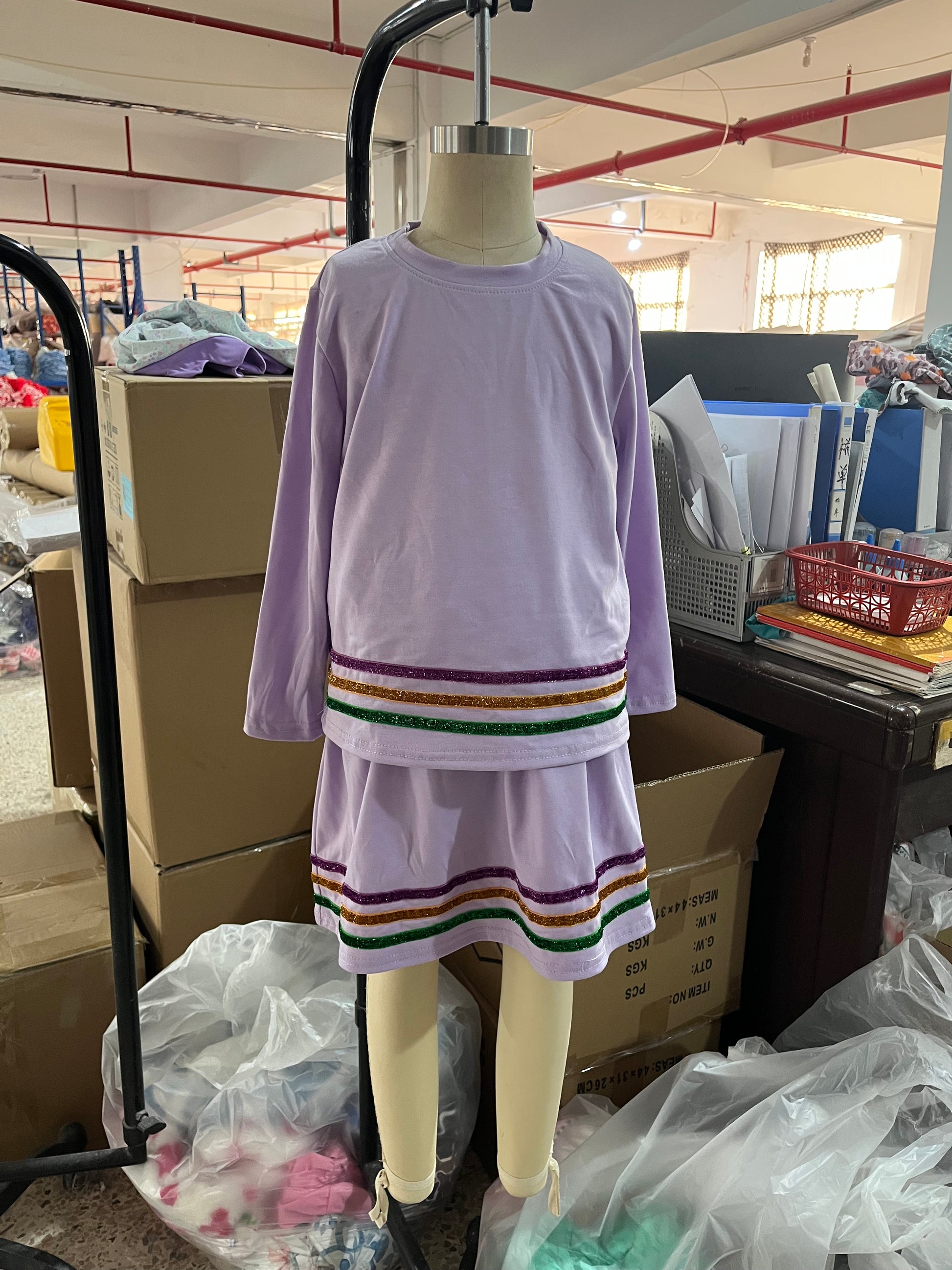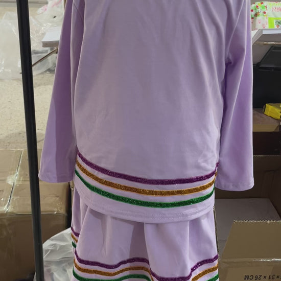 GLD1573 Purple Long Sleeve Top Skirts Shorts Girls Mardi Gras Clothes Set