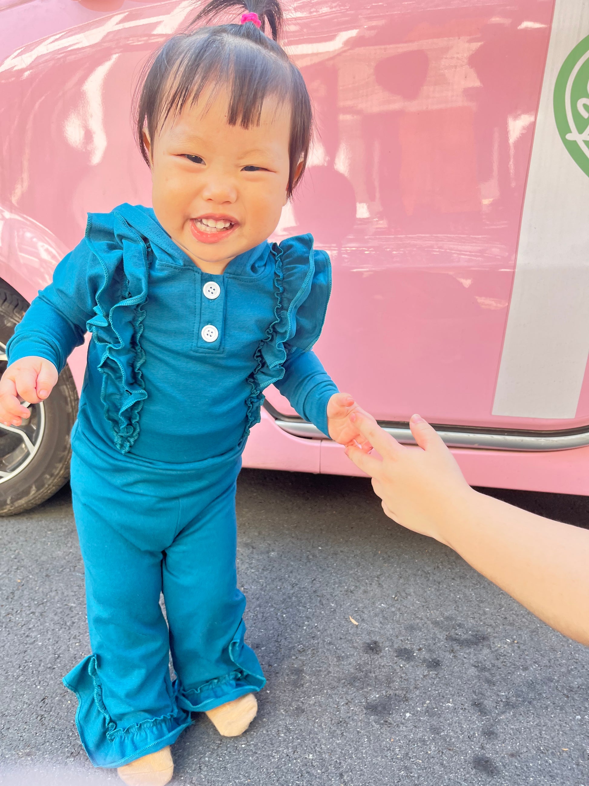 The item is ready to ship now,our sizes are true to size.We have been making kids boutique clothing for 12years .