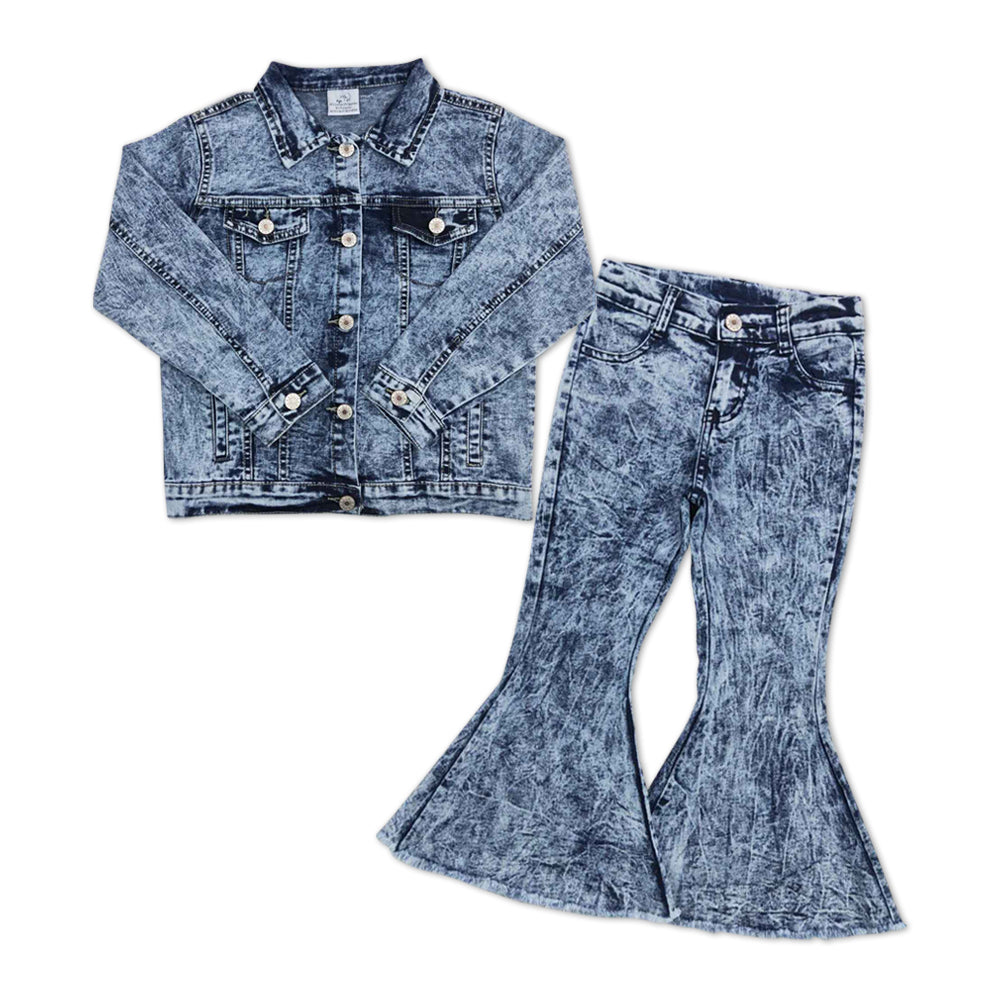GLP1139 Denim Jackets Top Bell Pants Girls Fall Clothes Sets