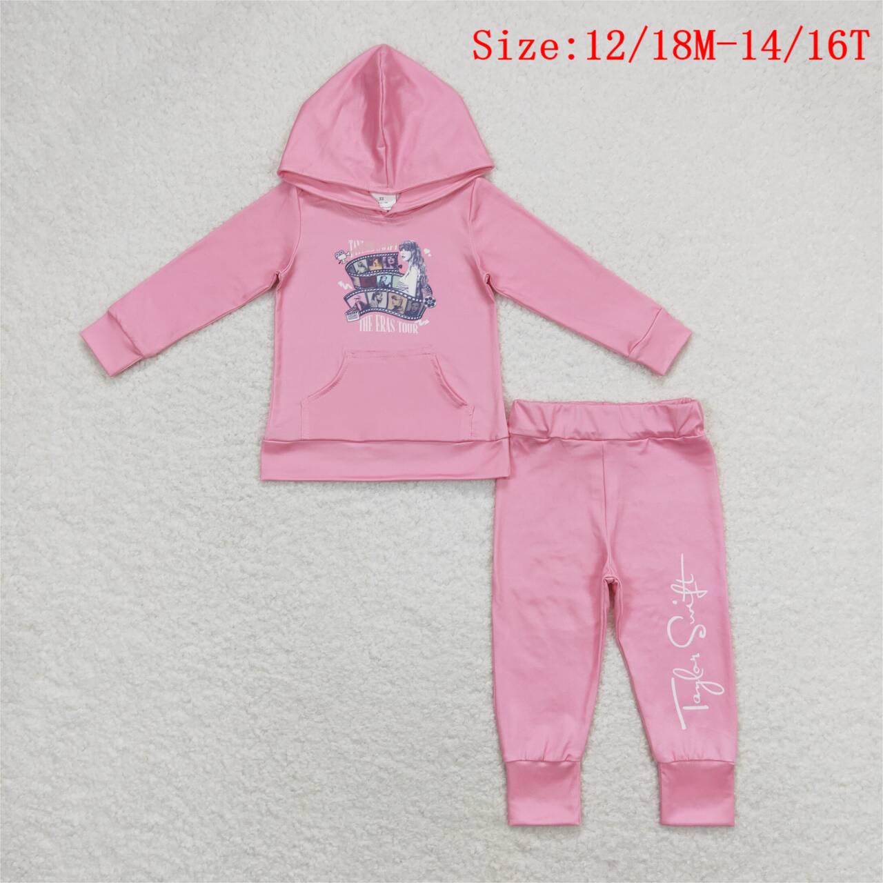 GLP1170 Pink Singer Swiftie Print Girls Fall Hoodie Clothes Set