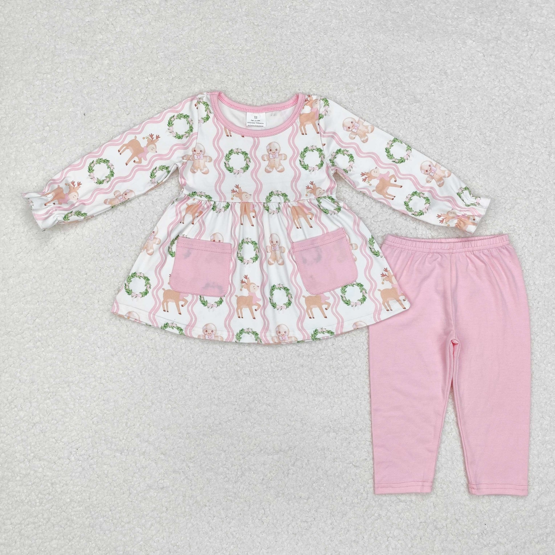 GLP1629 Gingerbread Flowers Tunic Top Pink Pants Girls Christmas Clothes Set