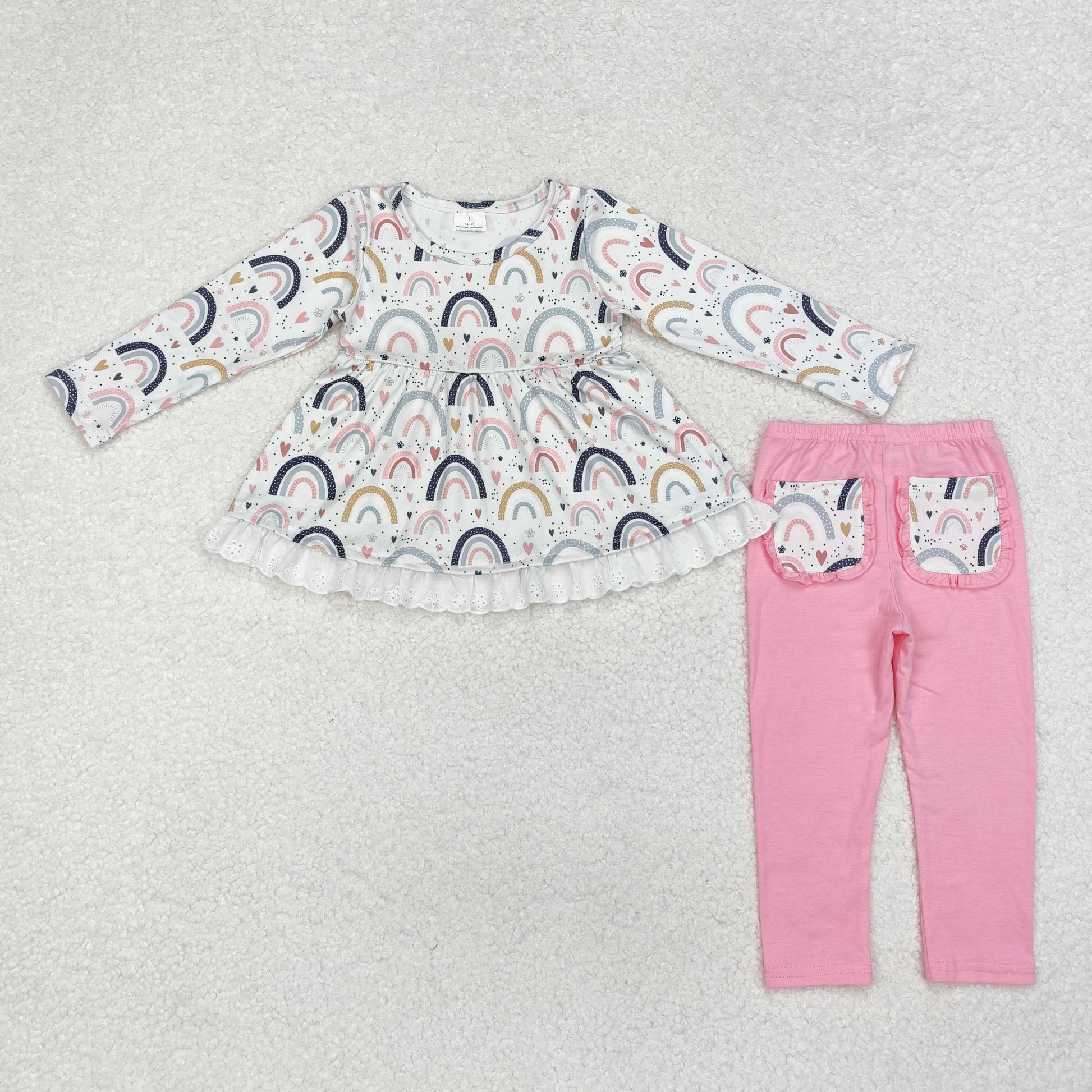 GLP1787 Rainbow Tunic Top Pink Pockets Pants Girls Fall Clothes Set