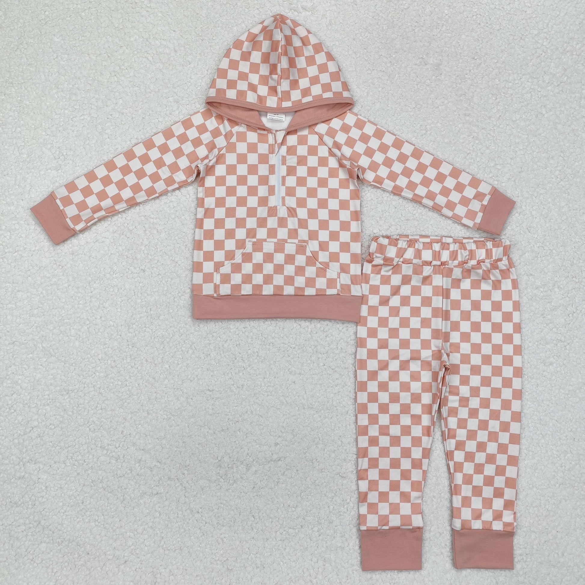 GLP1989 Pink Plaid Print Girls Fall Hoodie Clothes Set