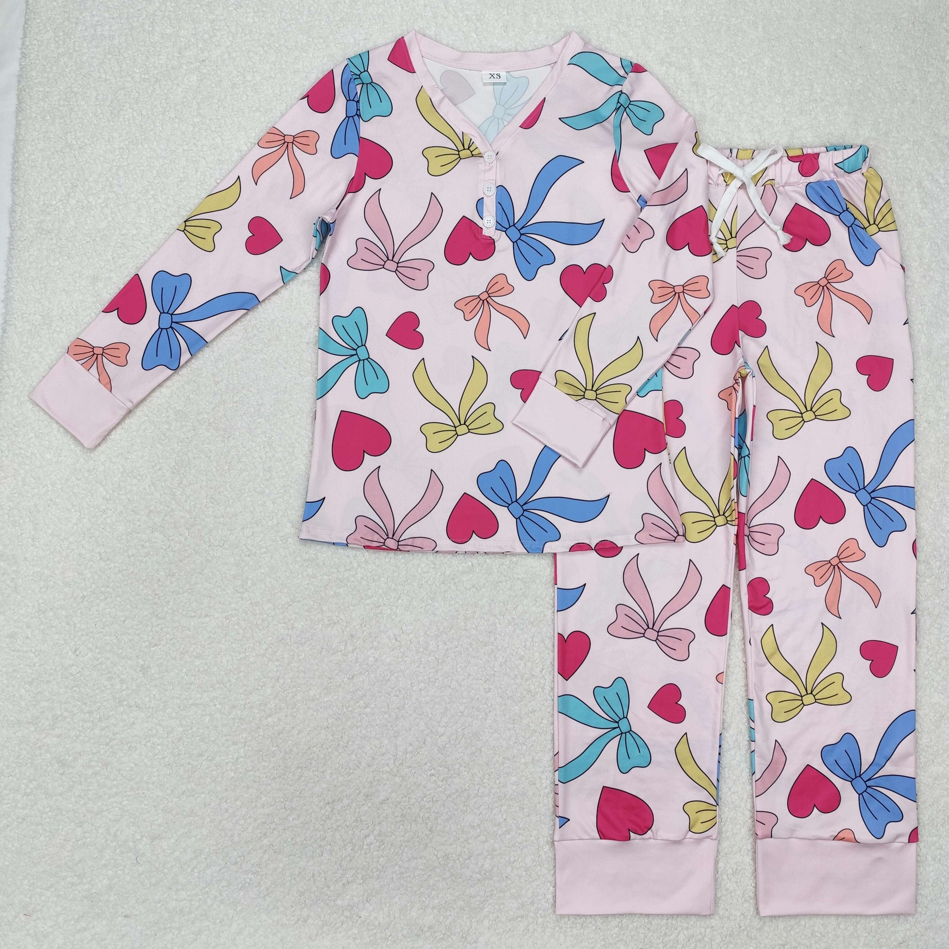 GLP2275 Adult Colorful Bows Heart Print Woman Valentine's Day Pajamas Clothes Set