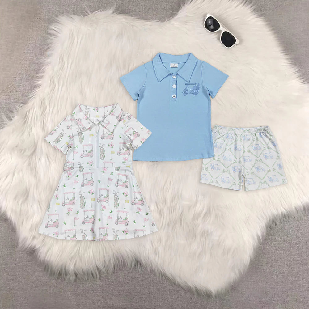 Golf Trucks Boys Shorts Outfits Girls Yoga Dress Sibling Clothes