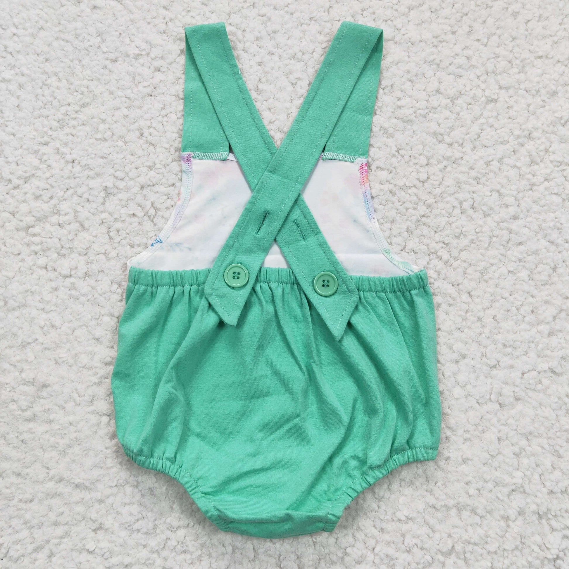 Green flower print summer romper D5-1