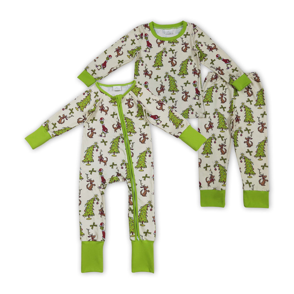 Green Frog Print Girls Christmas Pajamas Matching Clothes