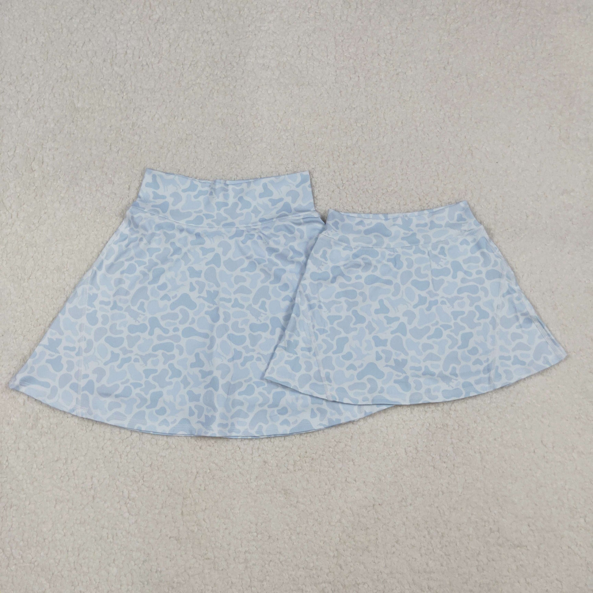 Grey Camo Print Mom and Me Summer Bottom Yoga Shorts Skirts