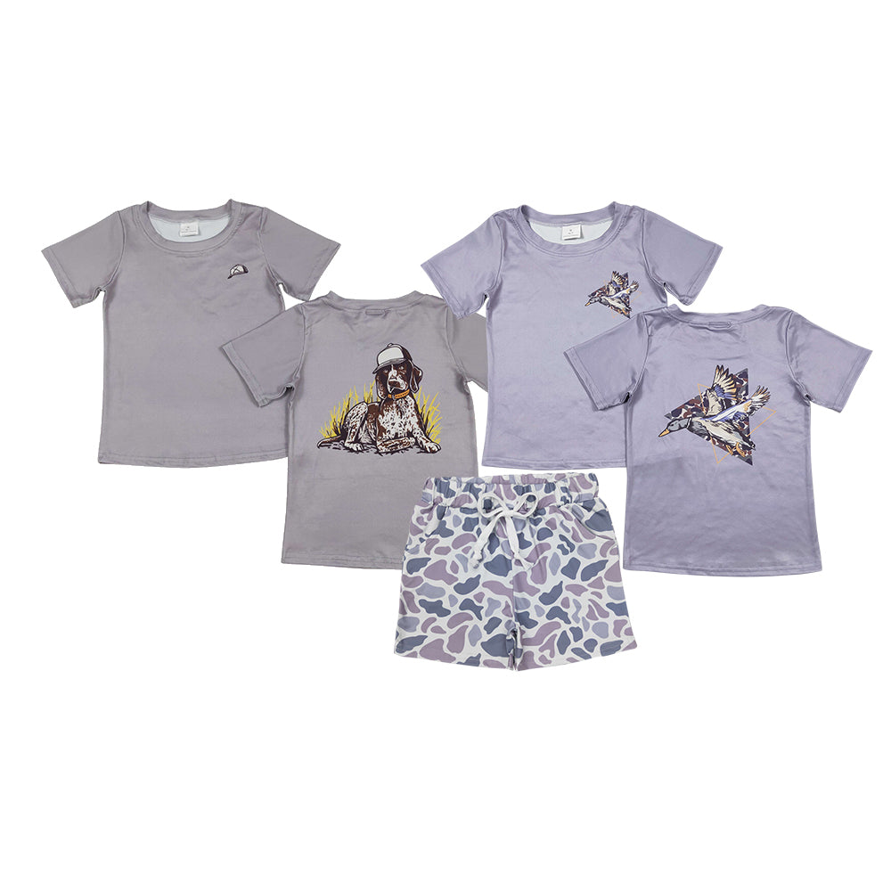 Grey Camo Shorts Boys Summer Clothes Set Brothers Wear