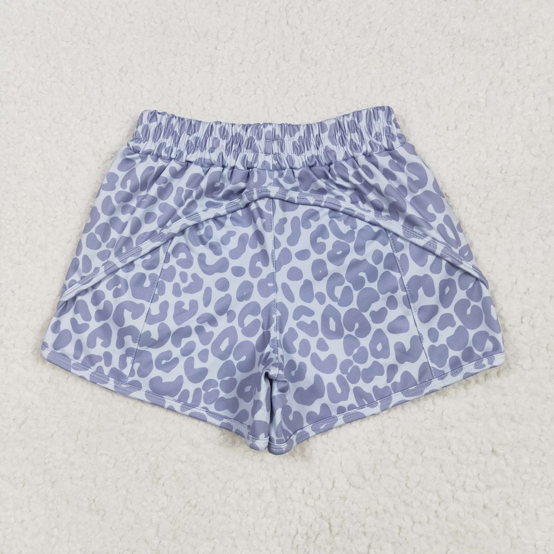 Grey Leopard Print Mom and Me Summer Zipper Pockets Bottom Yoga Shorts